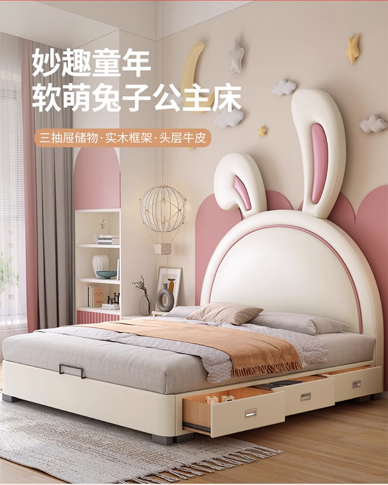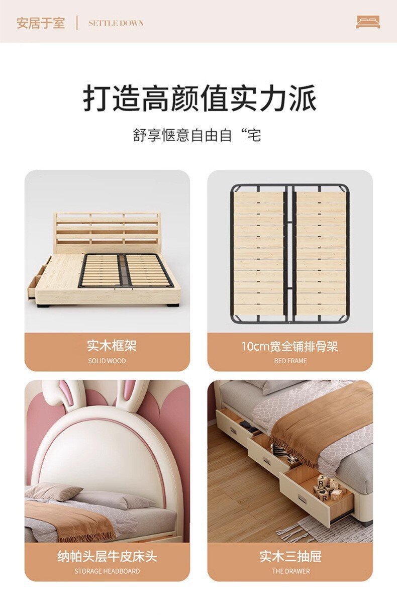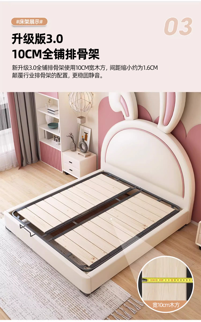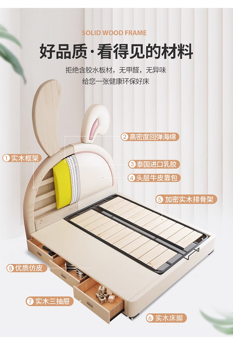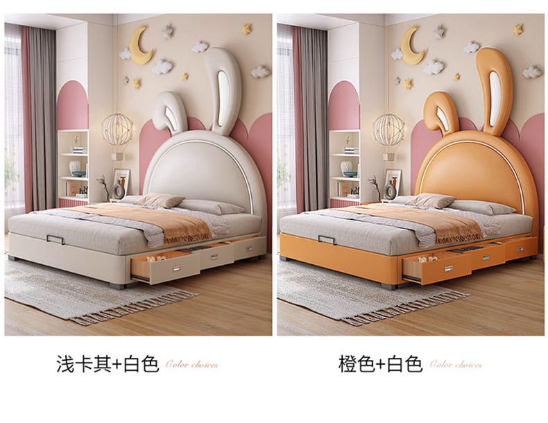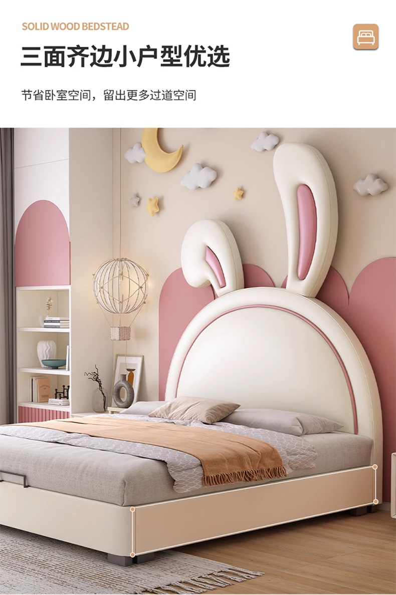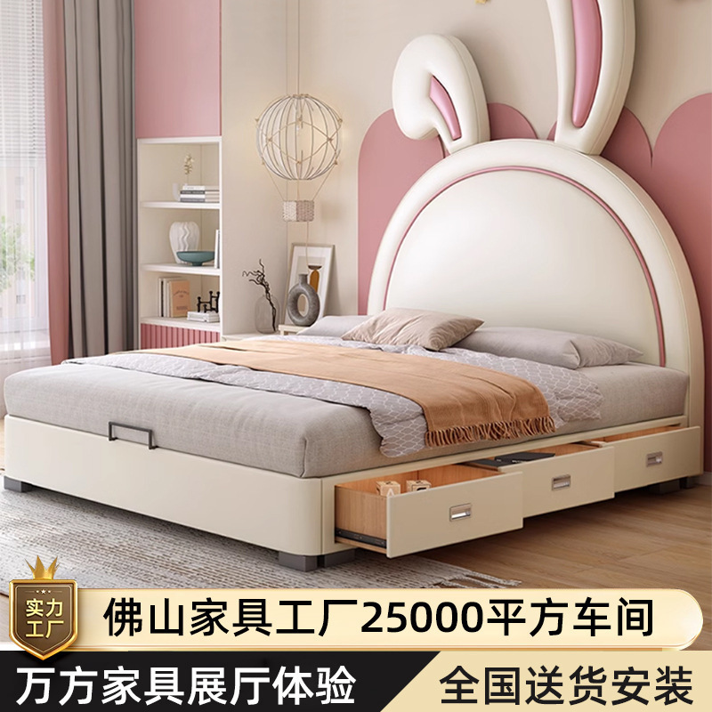 어린이 침대 토끼 공주 가죽 침대 1.5 m 1.2 소년과 소녀 저장 높은 상자 현대 간단한 단단한 나무 가죽 더블 침대