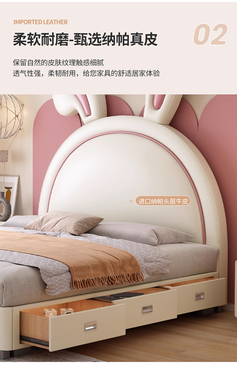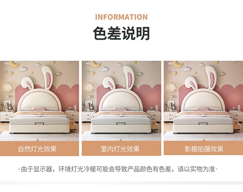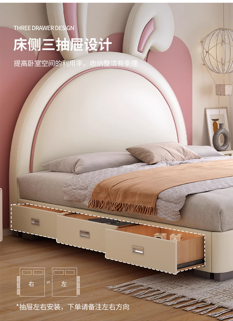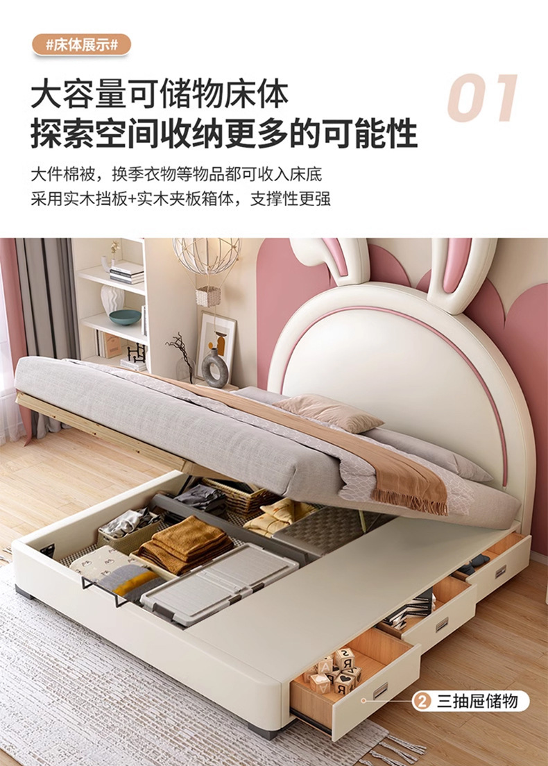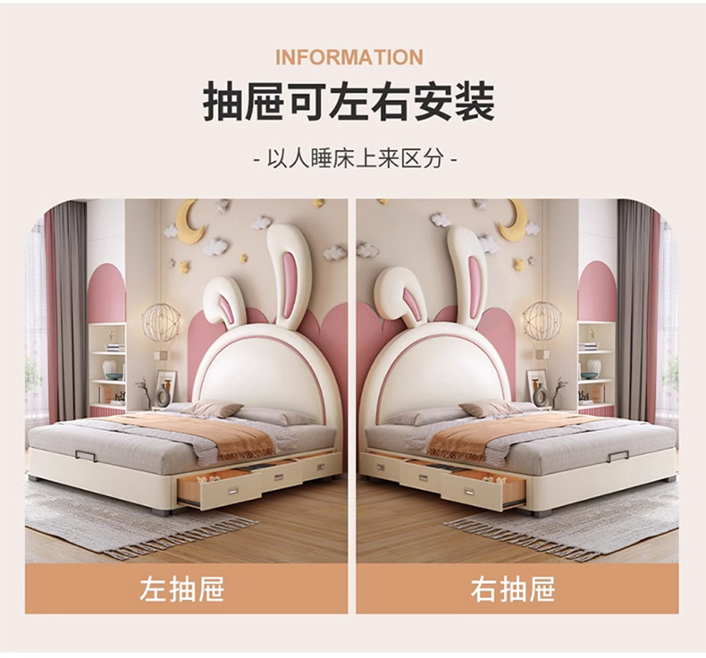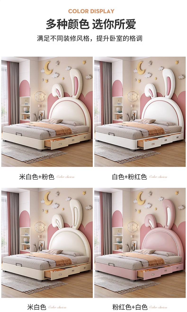 어린이 침대 토끼 공주 가죽 침대 1.5 m 1.2 소년과 소녀 저장 높은 상자 현대 간단한 단단한 나무 가죽 더블 침대
