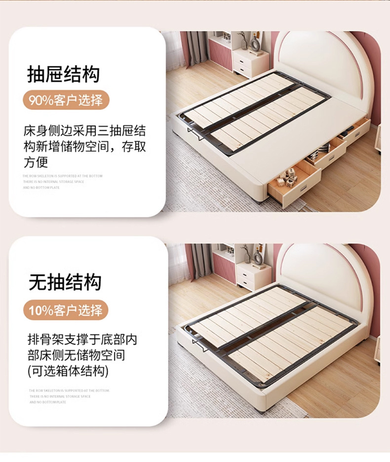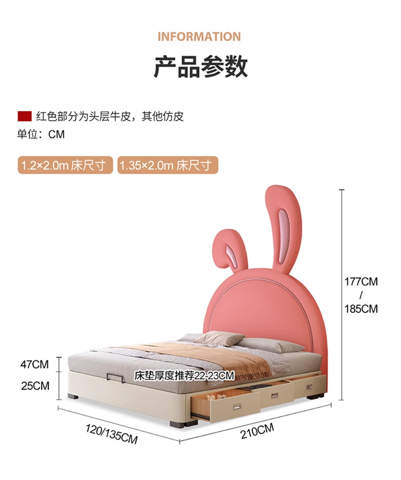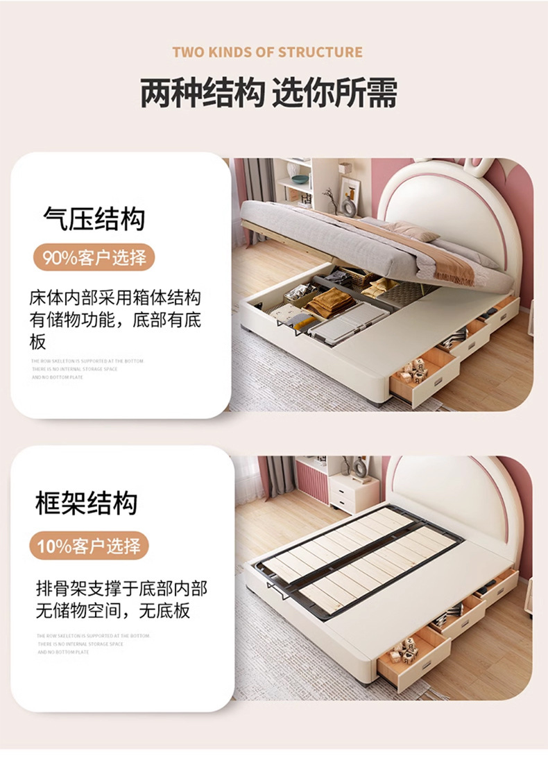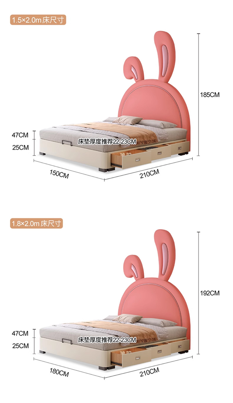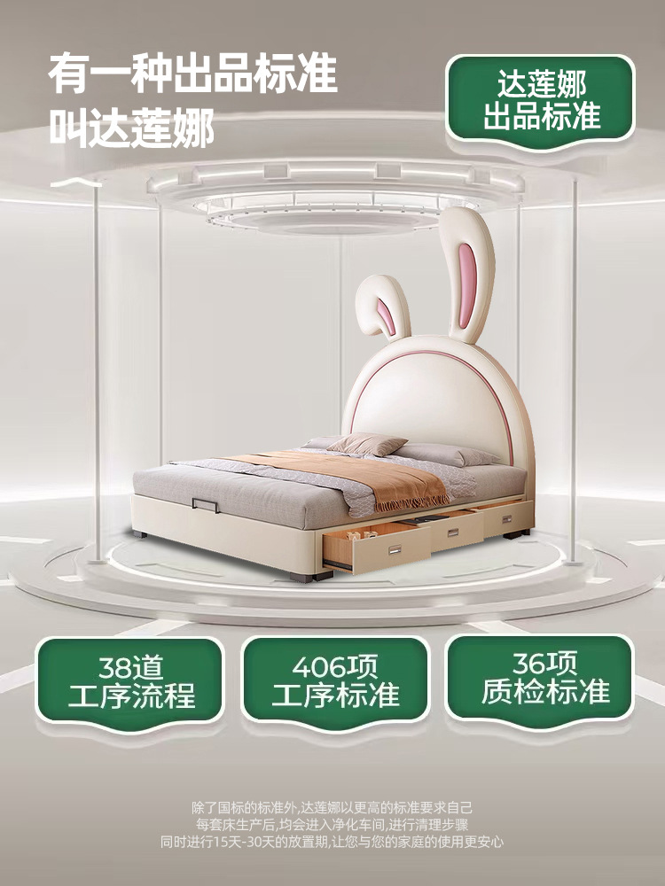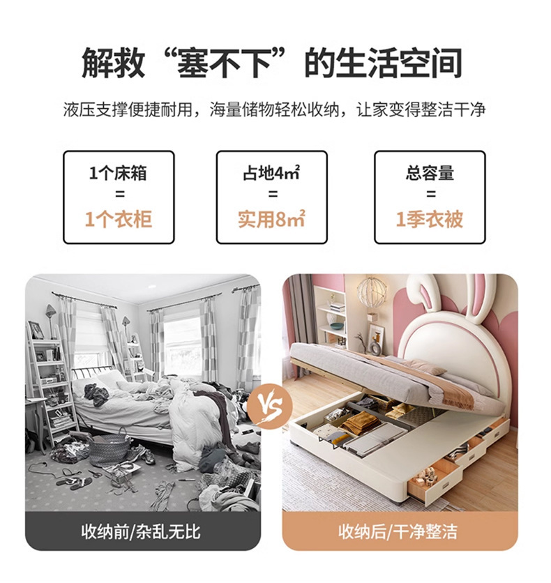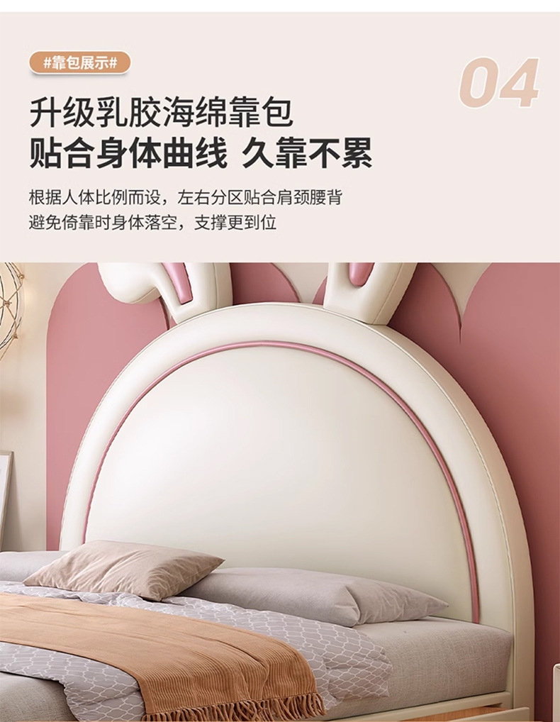 어린이 침대 토끼 공주 가죽 침대 1.5 m 1.2 소년과 소녀 저장 높은 상자 현대 간단한 단단한 나무 가죽 더블 침대