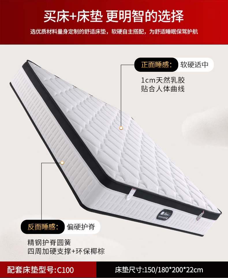 • 키가 큰 수납 침대 단단한 매트리스 C100 + 침대 옆 탁자 1개
