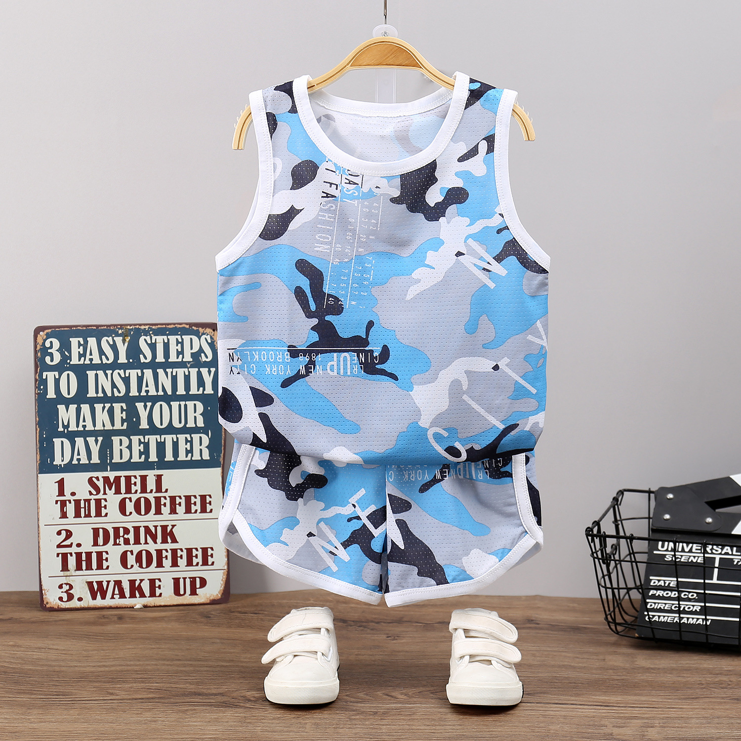 어린이 조끼 세트 여름 슬링 아이스 실크 민소매 반바지 속건 의류 소년 메쉬 얇은 아동 의류 도매스토어 가기