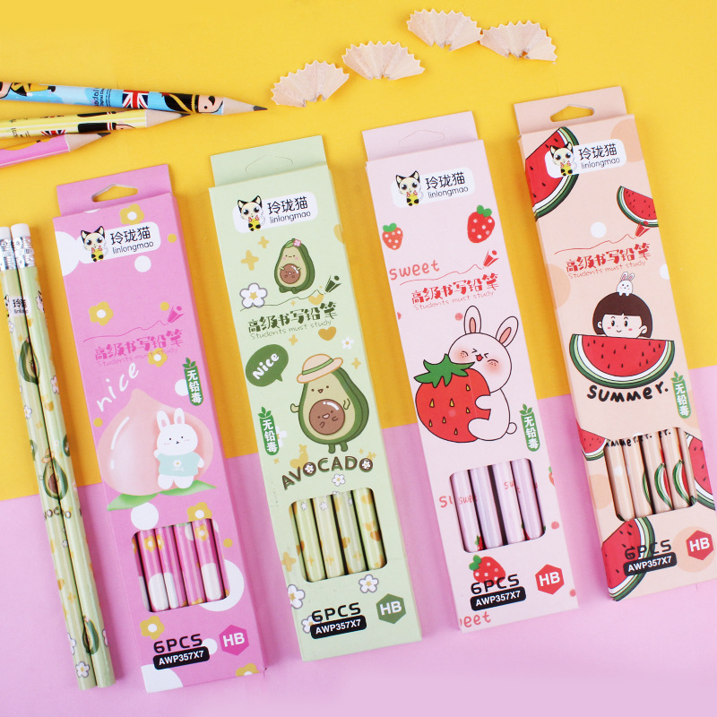 어린이 만화 박스형 연필 학생 6 팩 박스형 연필 귀여운 필기 연필 드로잉 스케치 연필