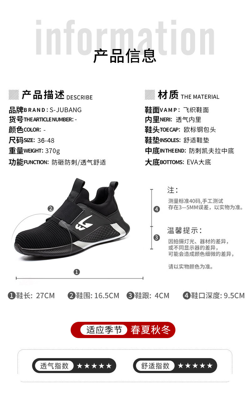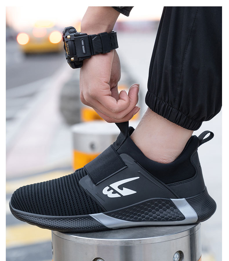 메이커도 남성용 편안한 작업화, 충격 방지 및 펑크 방지 기능, 사계절용, 통기성, 내마모성, 경량 작업 안전화