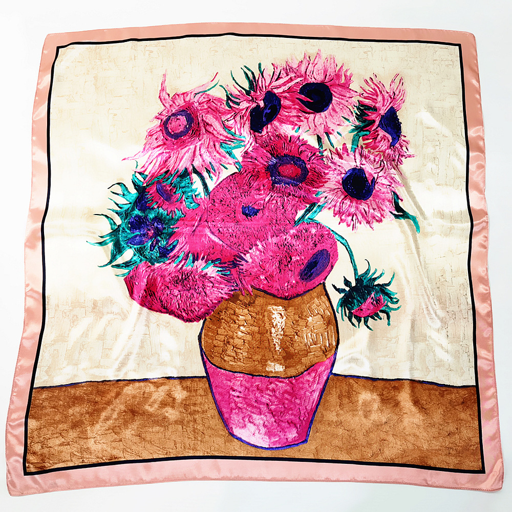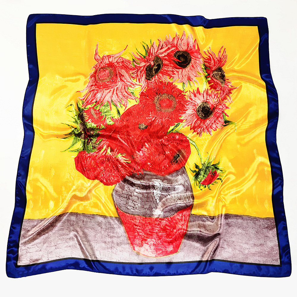 반 고흐 90cm 클래식 해바라기 숙녀 인쇄 목도리 큰 사각형 스카프 스카프 스카프 작은 스카프 도매스토어 가기