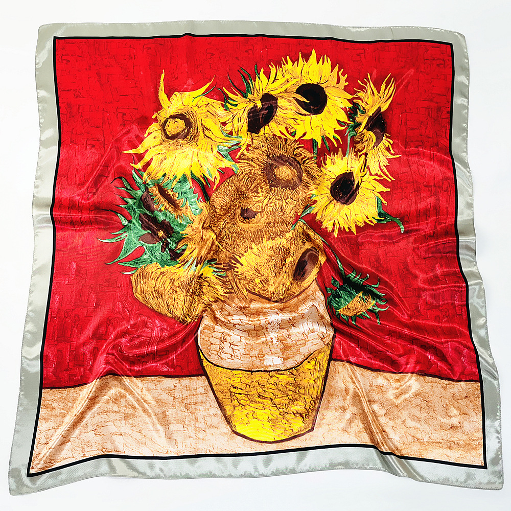 반 고흐 90cm 클래식 해바라기 숙녀 인쇄 목도리 큰 사각형 스카프 스카프 스카프 작은 스카프 도매