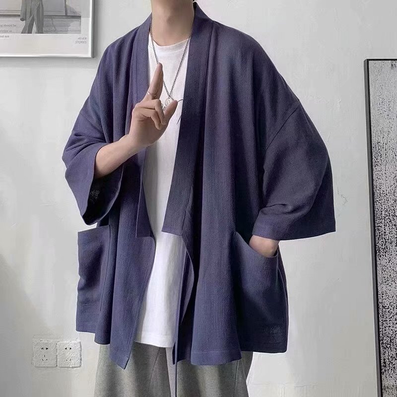 반팔 셔츠 남성 여름 홍콩 스타일 ins 트렌디 브랜드 잘 생긴 캐주얼 7부 소매 셔츠 얇은 오프 숄더 케이프 재킷스토어 가기