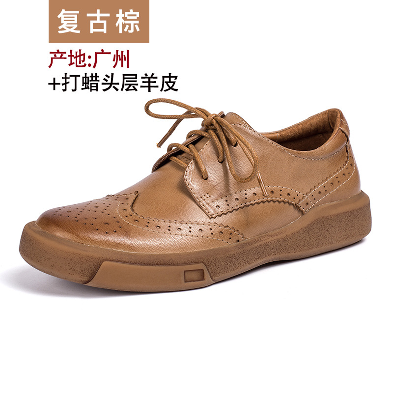 Mafy Mathu 봄과 가을 브록 여성 신발 레이스 업 작은 가죽 신발 여성용 영국 스타일 플랫 옥스포드 신발 양가죽 신발스토어 가기