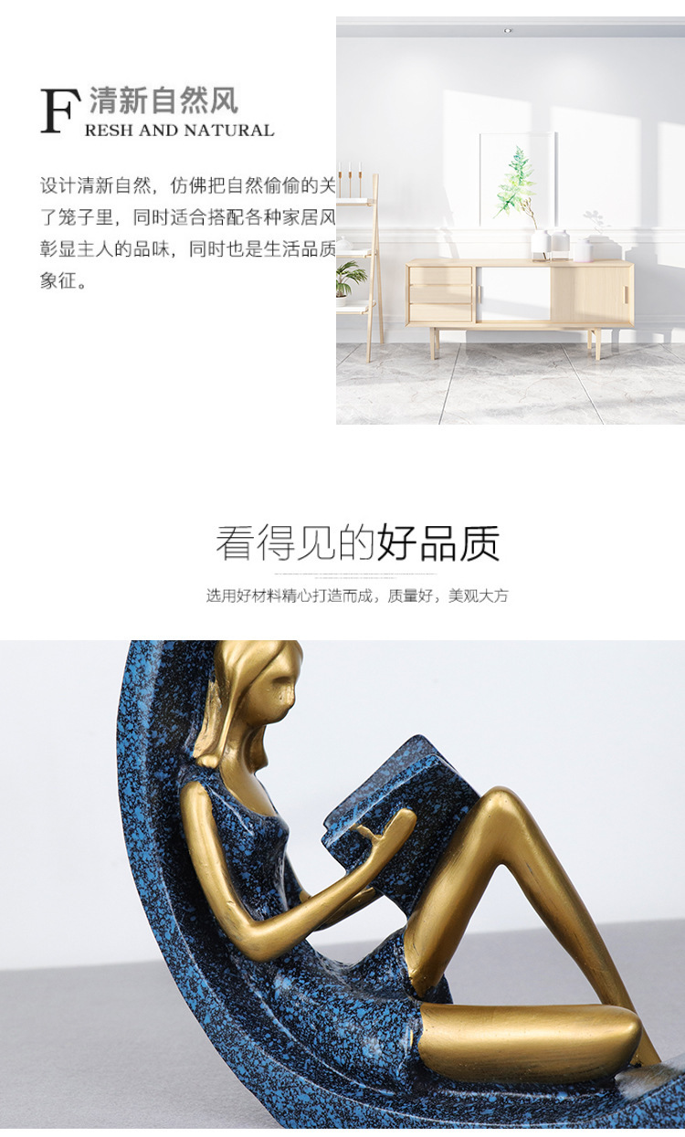 무료 배송 OK 독서 소녀의 데스크탑 장식 거실 연구 간단한 장식 빛 럭셔리 홈 수지 장식