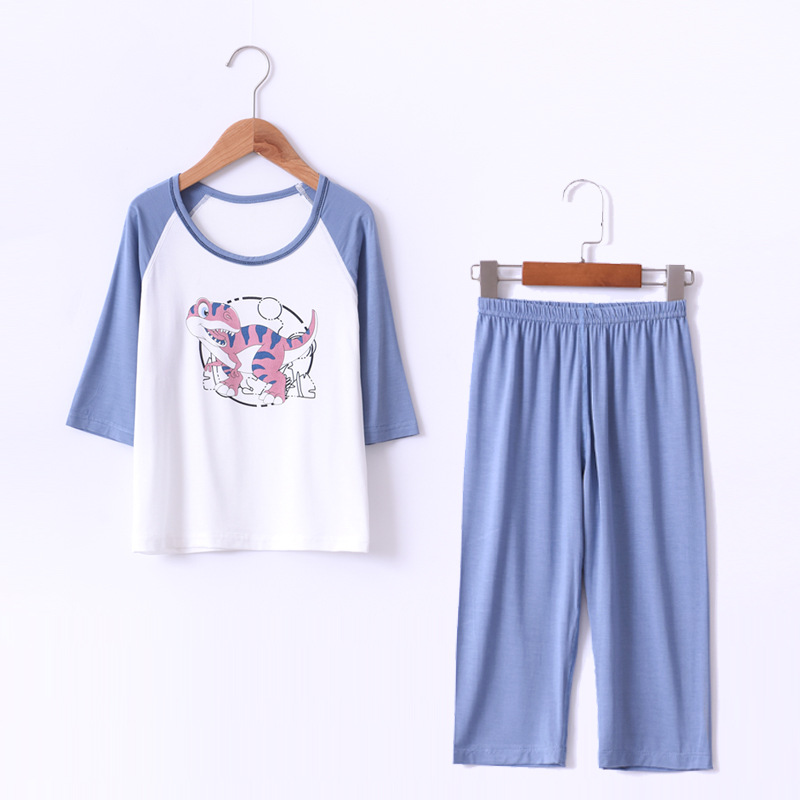 60 Modal 어린이 가정복 세트 여름 얇은 학생 남아 에어컨 옷 아기 7 소매 잠옷스토어 가기