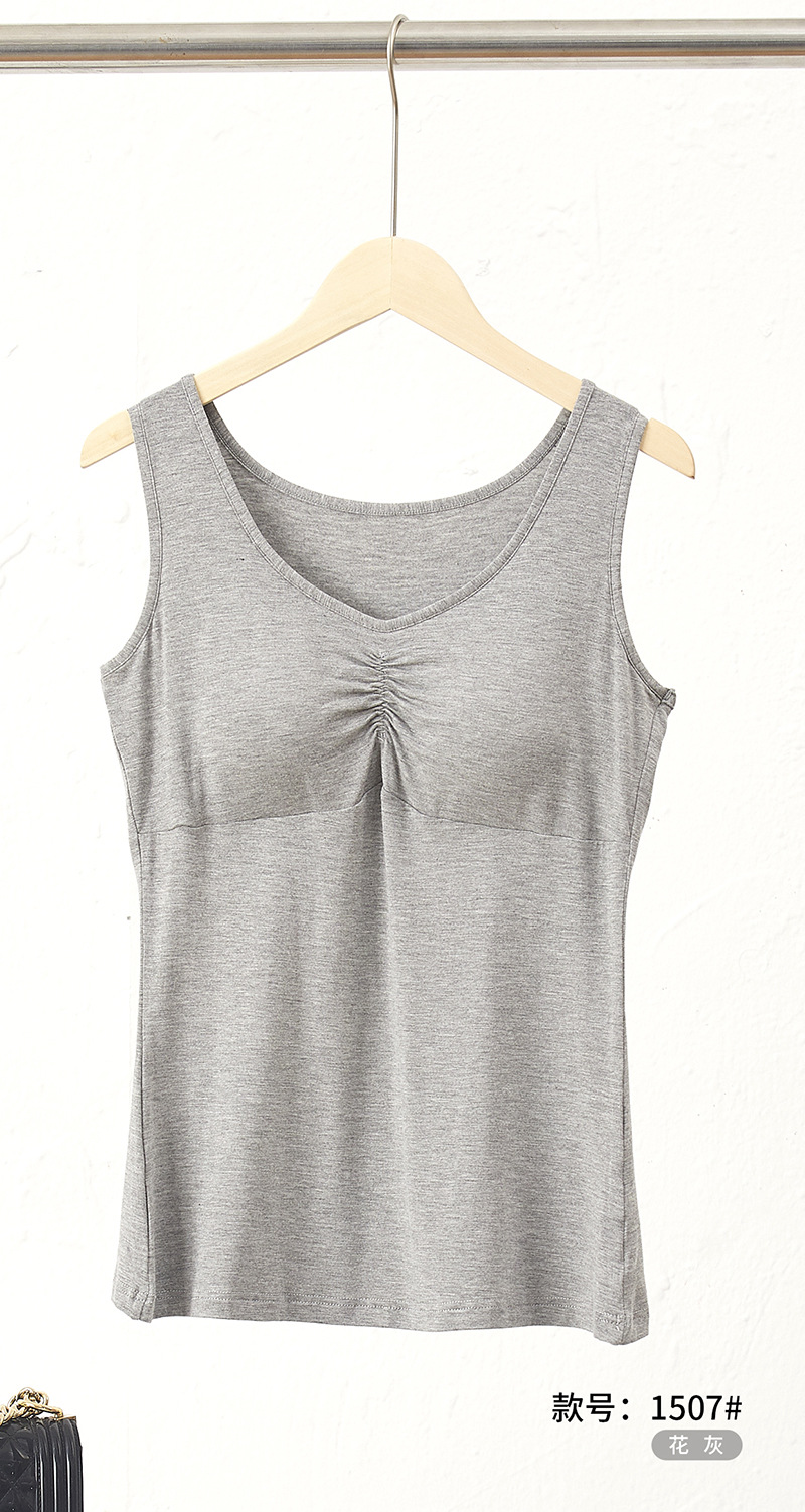 화이트 조끼 여성용 내부 1507 모달 여름 벨트 가슴 패드 마모 프리 브라베이스 와이드 숄더 스트랩 블랙 탑스토어 가기