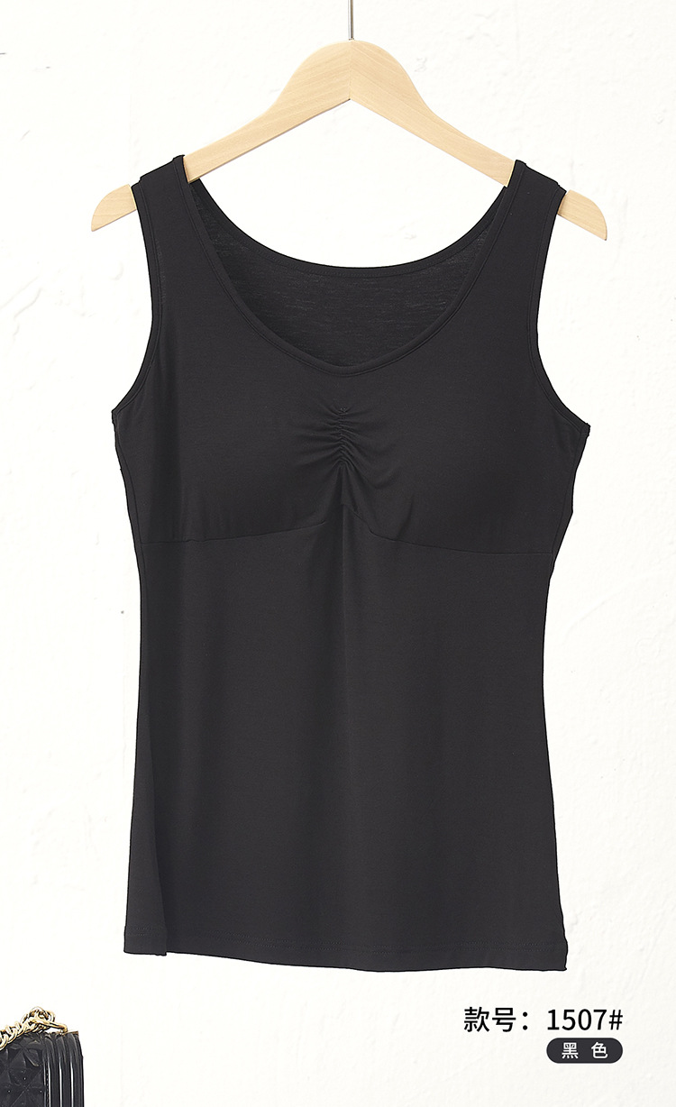 화이트 조끼 여성용 내부 1507 모달 여름 벨트 가슴 패드 마모 프리 브라베이스 와이드 숄더 스트랩 블랙 탑
