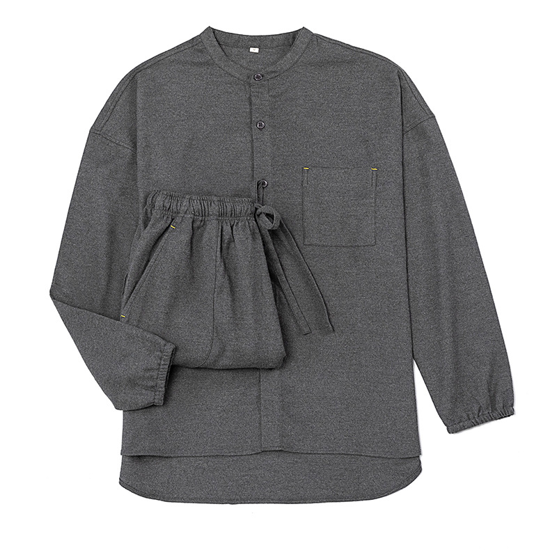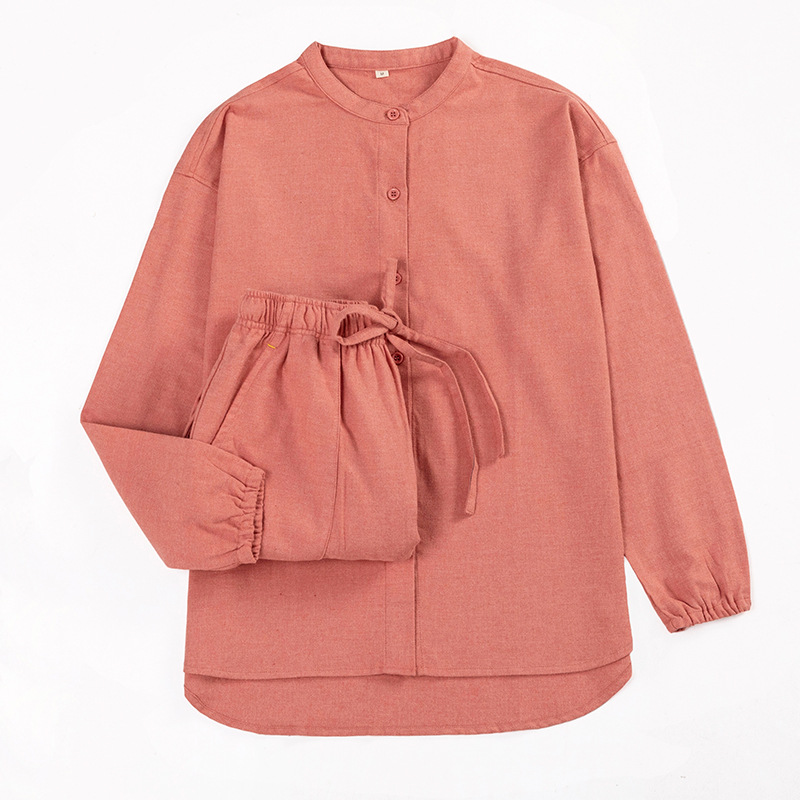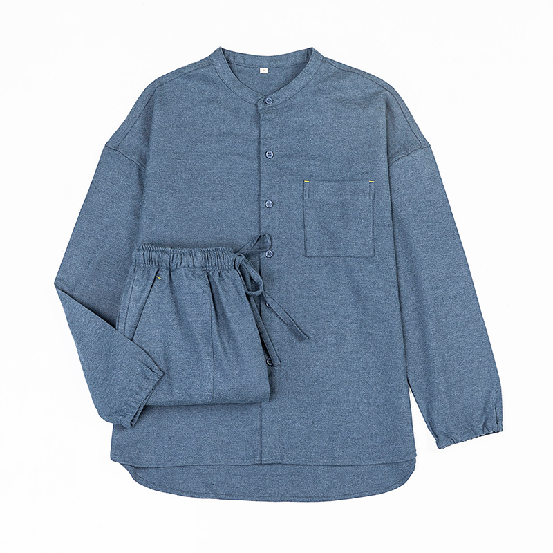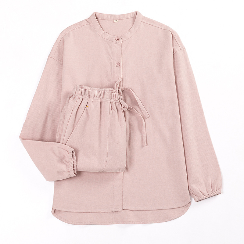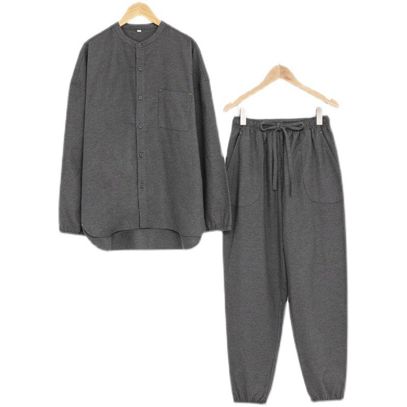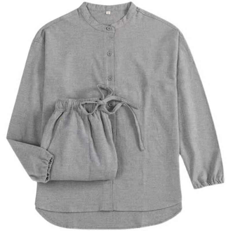 일본식 무인쇄 순면 플란넬 무봉제 잠옷 여성용 순면 기모 홈웨어 세트 남성용 외출 가능