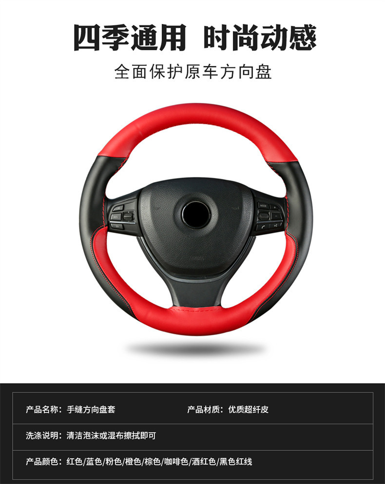 극세사 가죽 컬러 매칭 스포츠 사계절 자동차 핸들 커버 자동차 핸들 커버 #8862