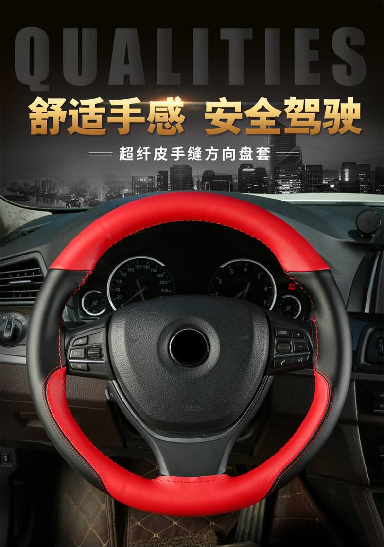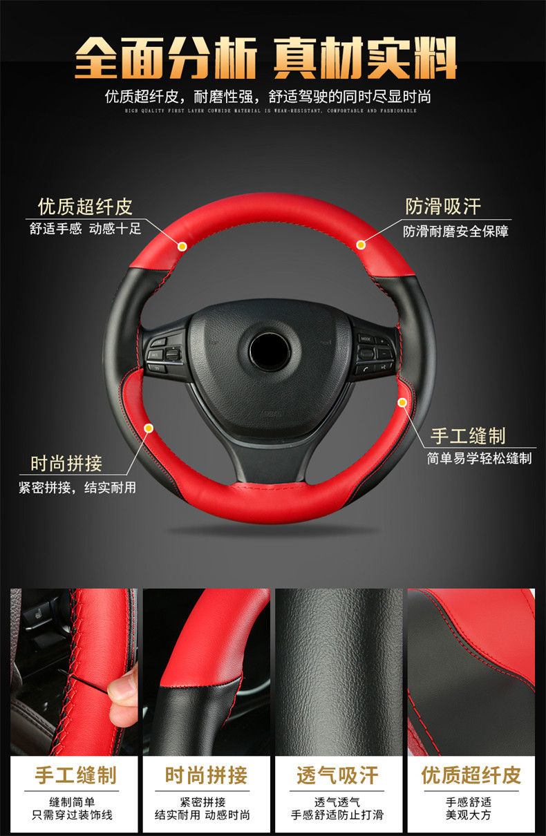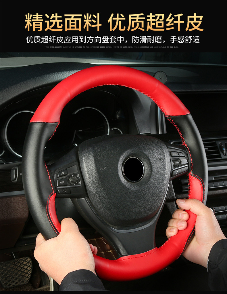 극세사 가죽 컬러 매칭 스포츠 사계절 자동차 핸들 커버 자동차 핸들 커버 #8862스토어 가기