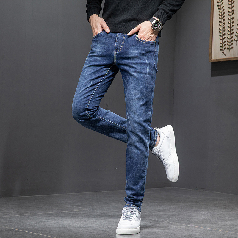 캐주얼 탄성 청바지 남자의 트렌디 한 한국 스타일 청소년 쇠고기 바지 남자의 가을과 겨울 새로운 남자의 한국 스타일 유행스토어 가기