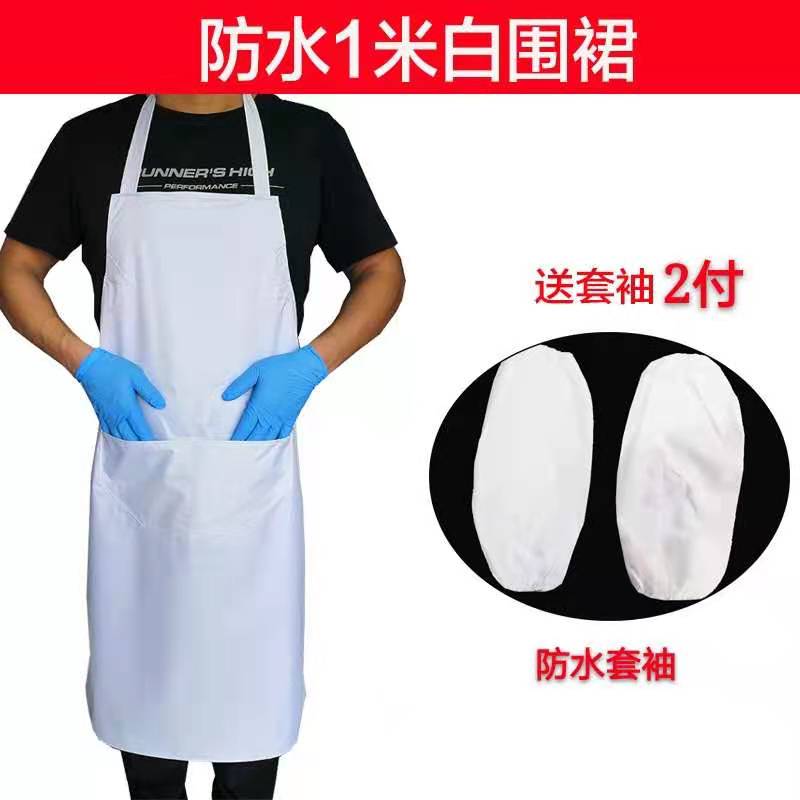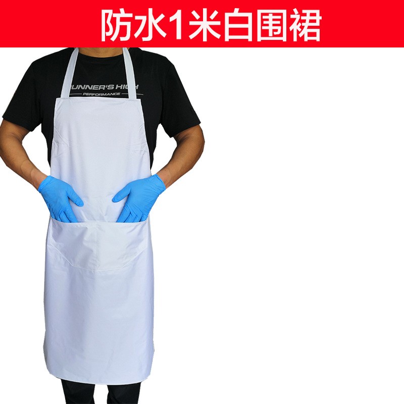 4、防水1米白围裙 材质为春亚纺布料,背面加了防水涂层,颜色偏暗,尺寸是1米*65cm(不算挂脖)。