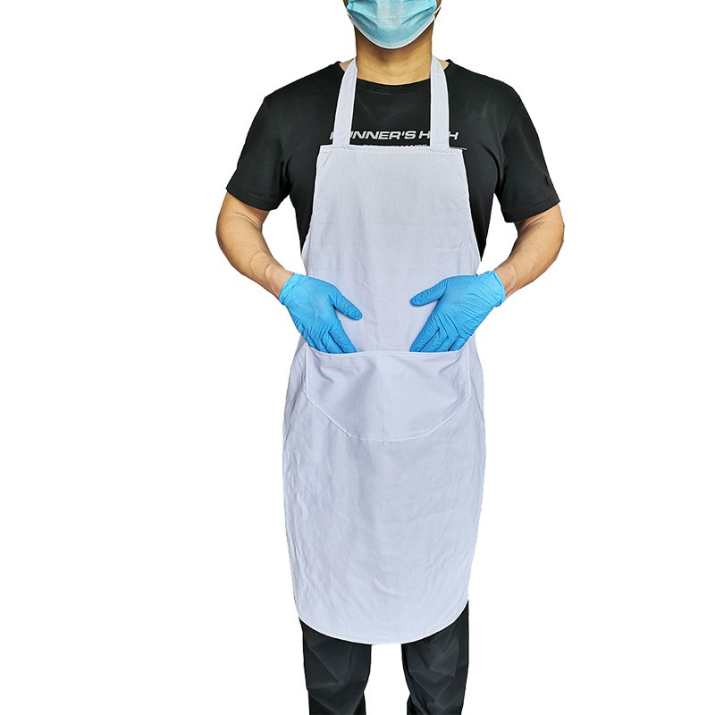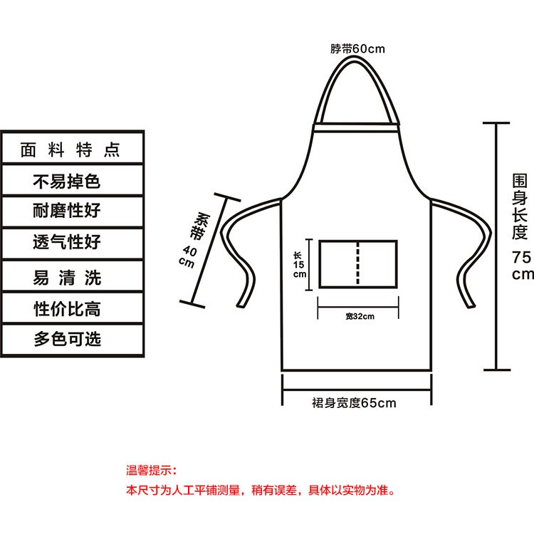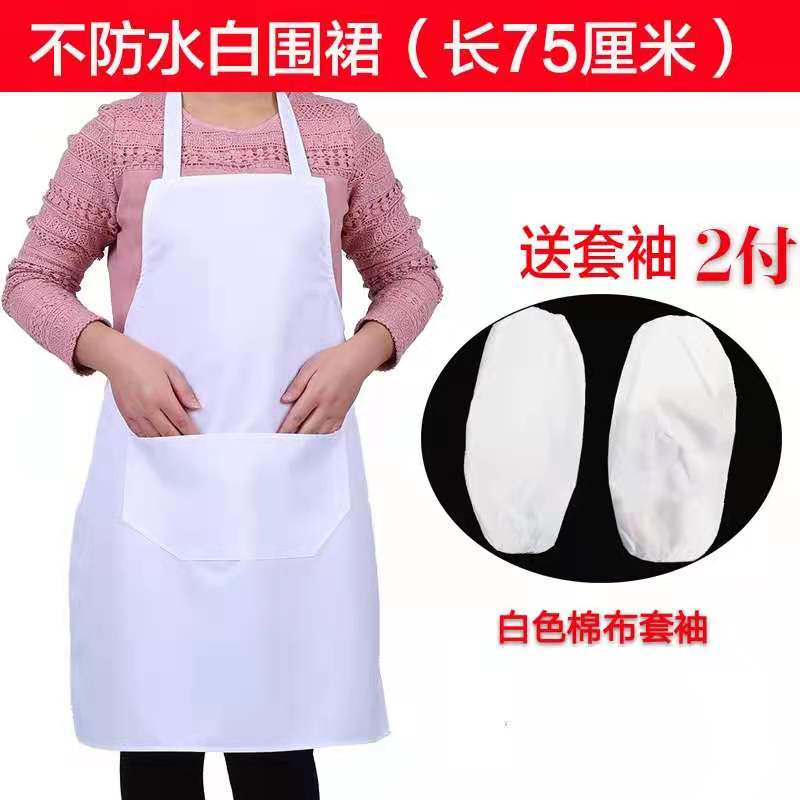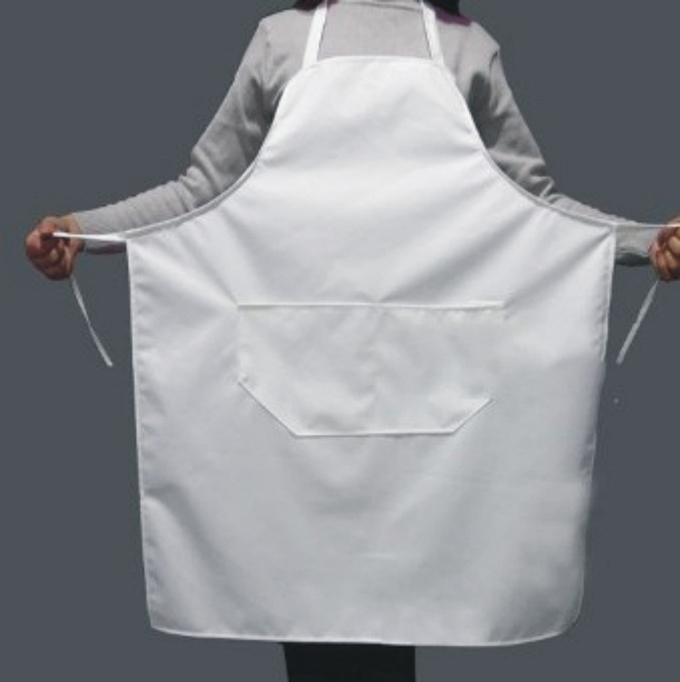2、不防水白围裙 材质是涤纶布料,颜色偏白,性价比比较高,尺寸75cm*65cm(不算挂脖) 。