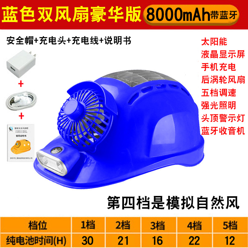 더블 팬 안전 모자 블루투스 충전식 건설 현장 헤드 다기능 냉각 유물 차양 두꺼운 에어컨 헬멧