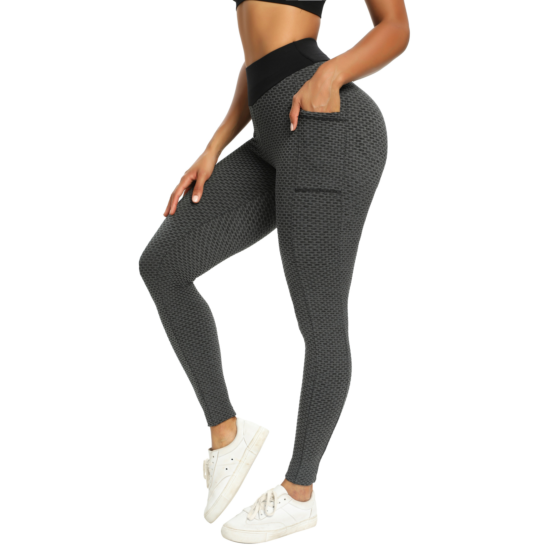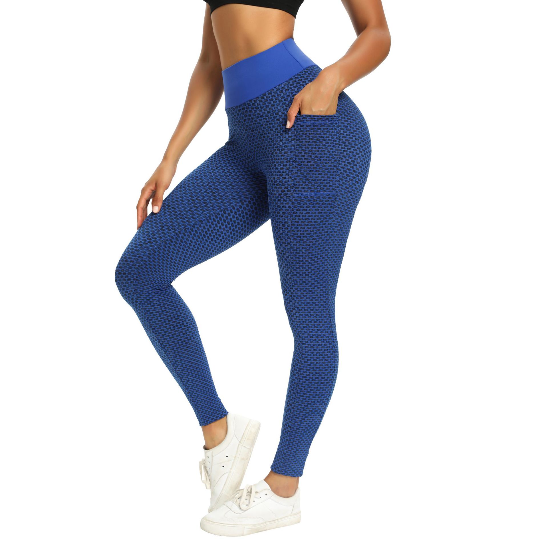 아마존 유럽 및 미국 요가 의류 스포츠 피트니스 달리기 발목 길이 바지 여성용 복숭아 힙 포켓 벌집 버블 요가 바지스토어 가기
