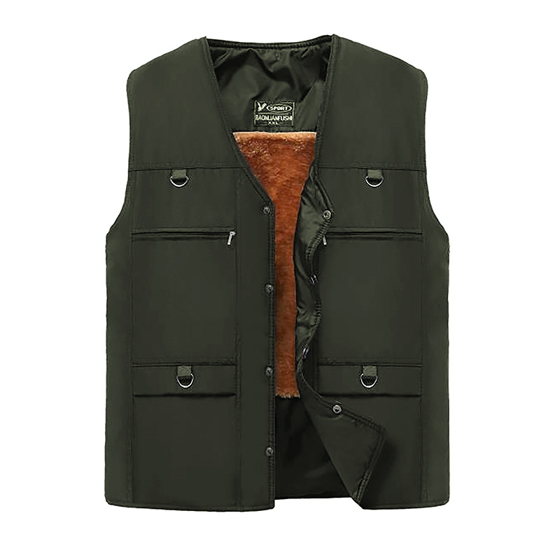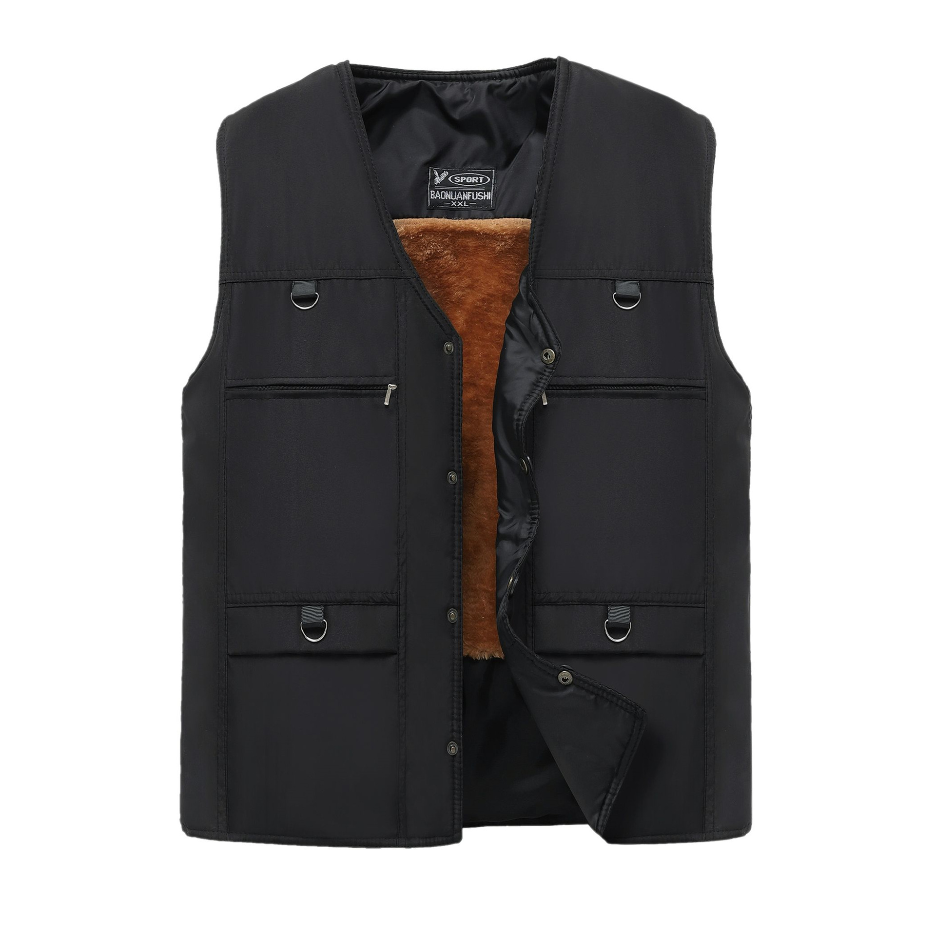 가을과 겨울 중년 및 노인 남자의 복합 천 면 조끼 기모 두꺼운 멀티 포켓 조끼 조끼 아빠를위한 조끼