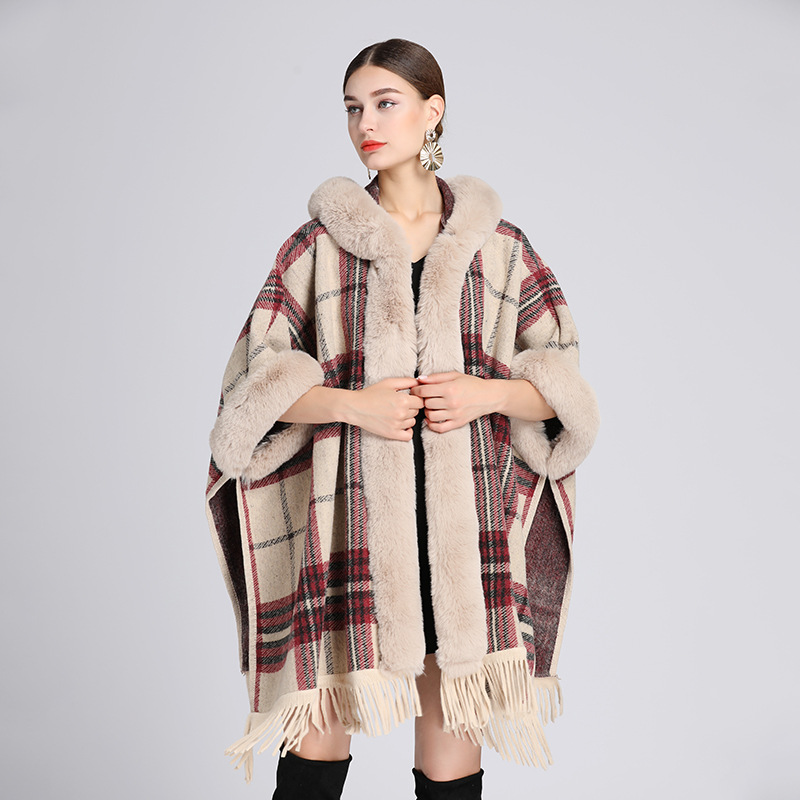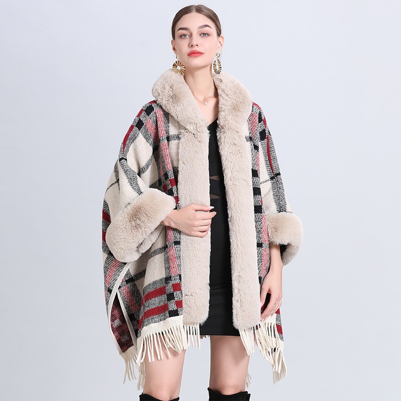 657 # 유럽과 미국 가을과 겨울 새로운 모조 렉스 토끼 모피 칼라 후드 목도리 망토 여성의 모직 코트 플러스 사이즈 카디건스토어 가기