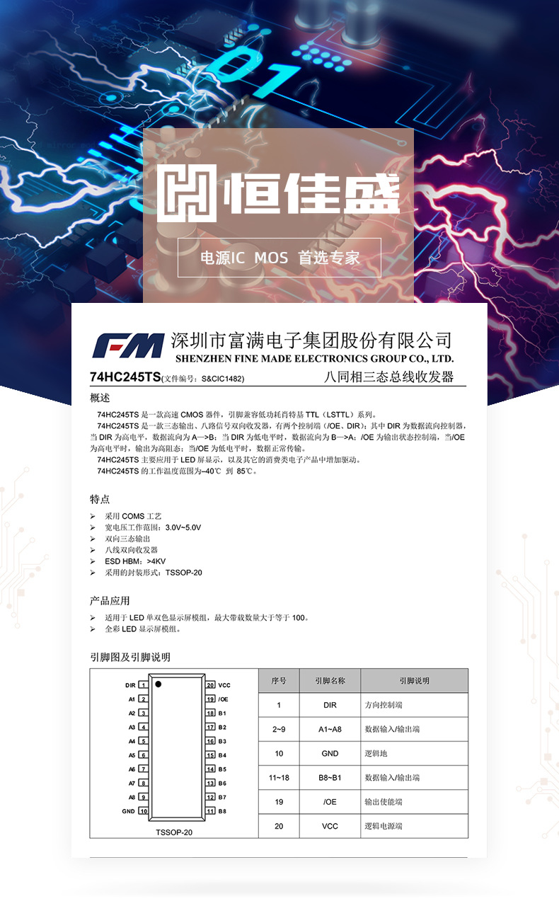 FM Fuman 74HC245KA/74HC245TS 3.0V ~ 5.0V 풀 컬러 LED 디스플레이 모듈 TSSOP-20스토어 가기