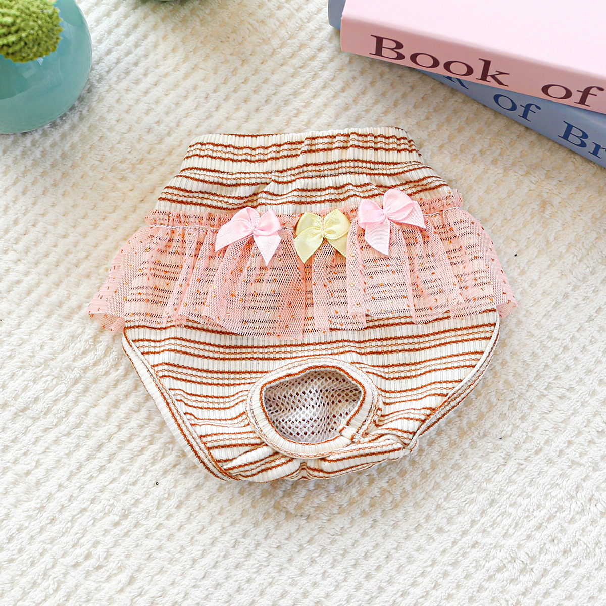 • 샤샤 리본 생리 팬티 - 브라운 스트라이프