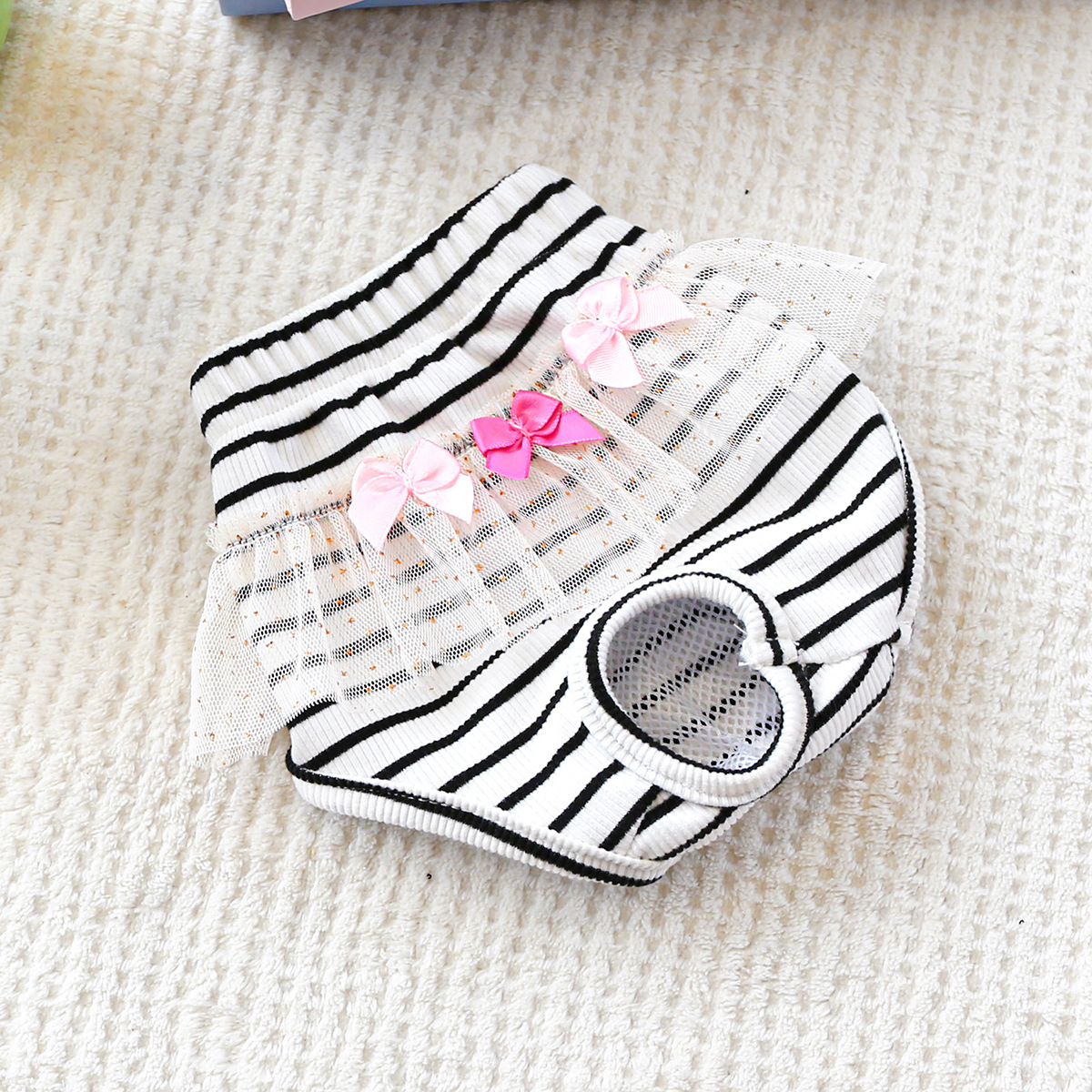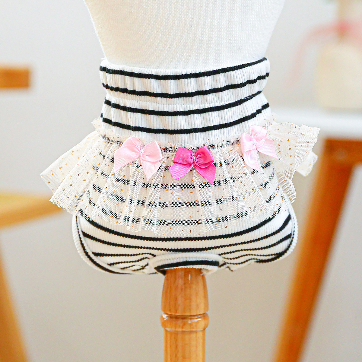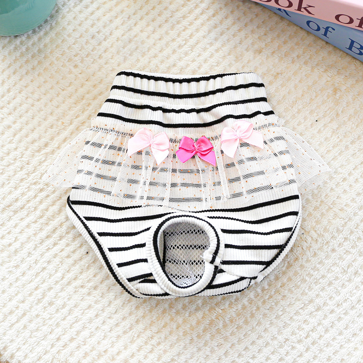 • 샤샤 리본 생리 팬티 - 블랙 앤 화이트 스트라이프