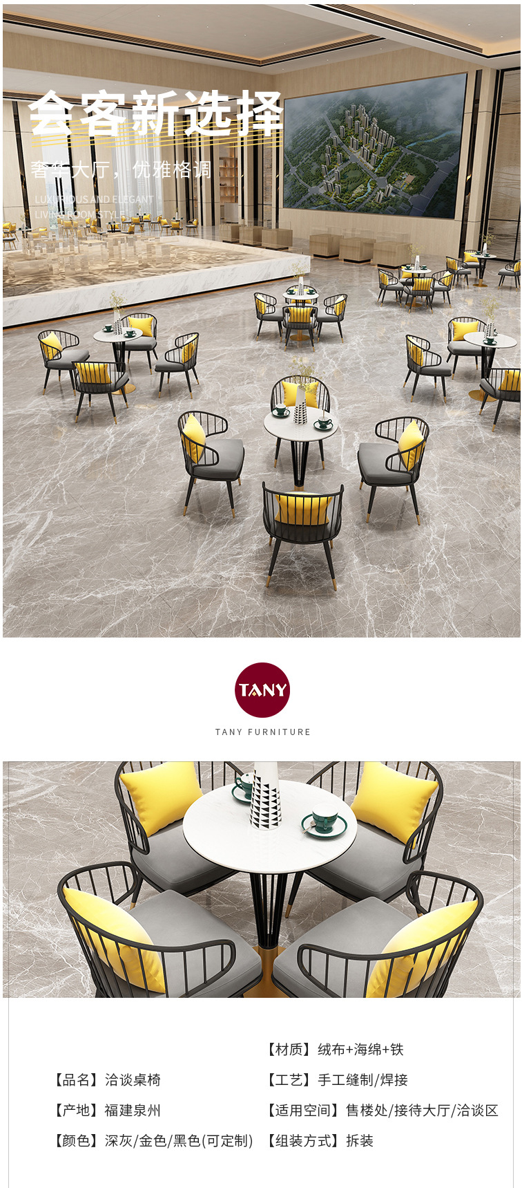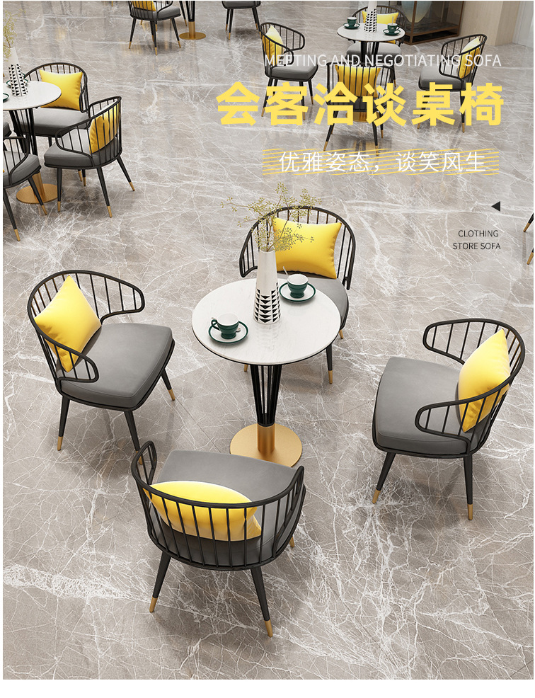 북유럽 회의 및 협상 테이블 및 의자 조합 상업 리셉션 1 테이블 멀티 의자 밀크 티 숍 커피 숍 락 플레이트 작은 원형 테이블