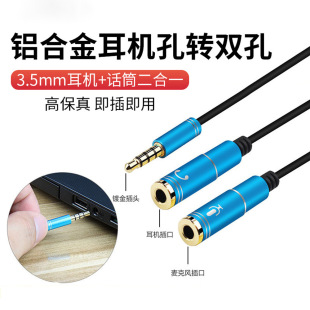 铝合金3.5mm音频线笔记本电脑耳机话筒二合一转接K歌直播音频线