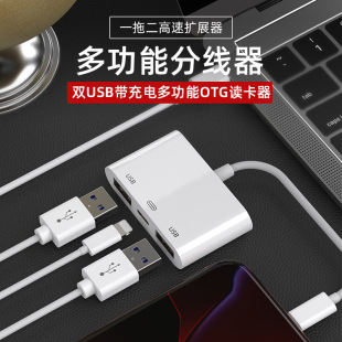 适用苹果数据线转U盘HUB分线器iPhone/ipad 充电OTG转接头转换器