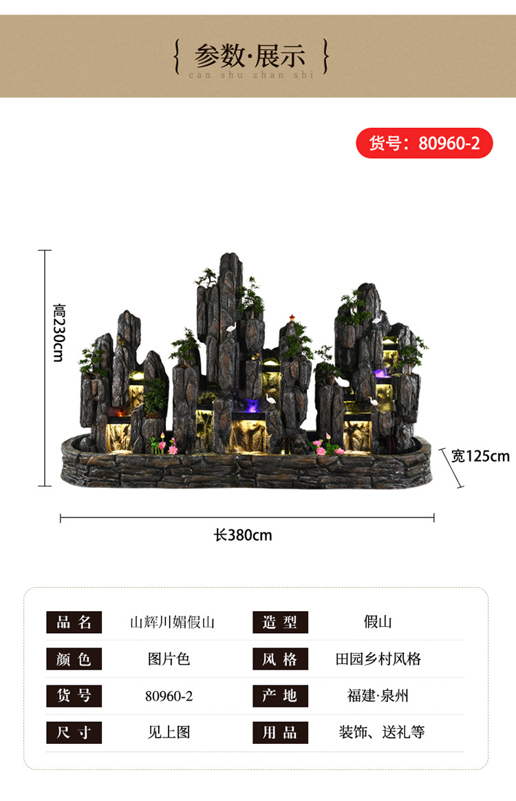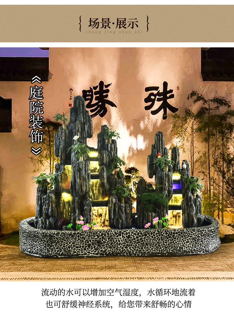 대형 바위 물 분수 폭포 조경 야외 빌라 안뜰 정원 실내 바닥 장식품 풍경