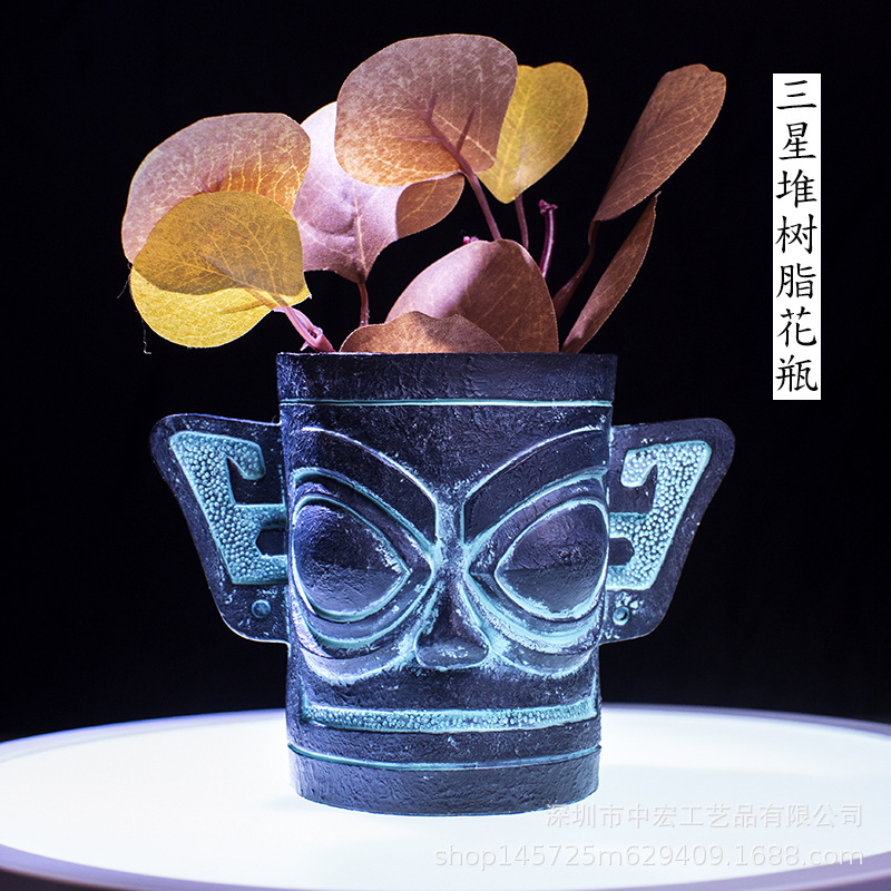 크로스 보더 Sanxingdui 수제 펜 용기 장식품 마스크 기념 열쇠 보관 현관 책장 책상 꽃병 재떨이
