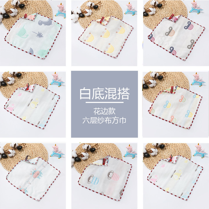 어린이 사각 타월 도매면 두꺼운 흡수성 아기 수건 신생아 아기 만화 거즈 어린이 타액 타월