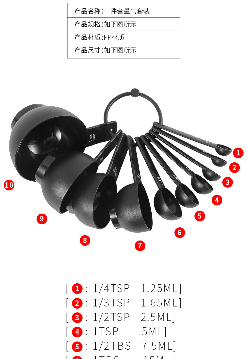 产品名称:现货塑料量勺10件套 塑料量匙量杯烘焙工具 套装烘焙称量工具量碗