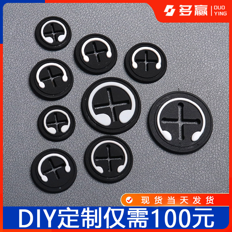 멀티 윈 재고 이어폰 구멍 크로스 콘센트 구멍 이어폰 라벨 PVC 고무 스탬프 드롭 플라스틱 상표 기호 스레드 구멍 사용자 정의스토어 가기