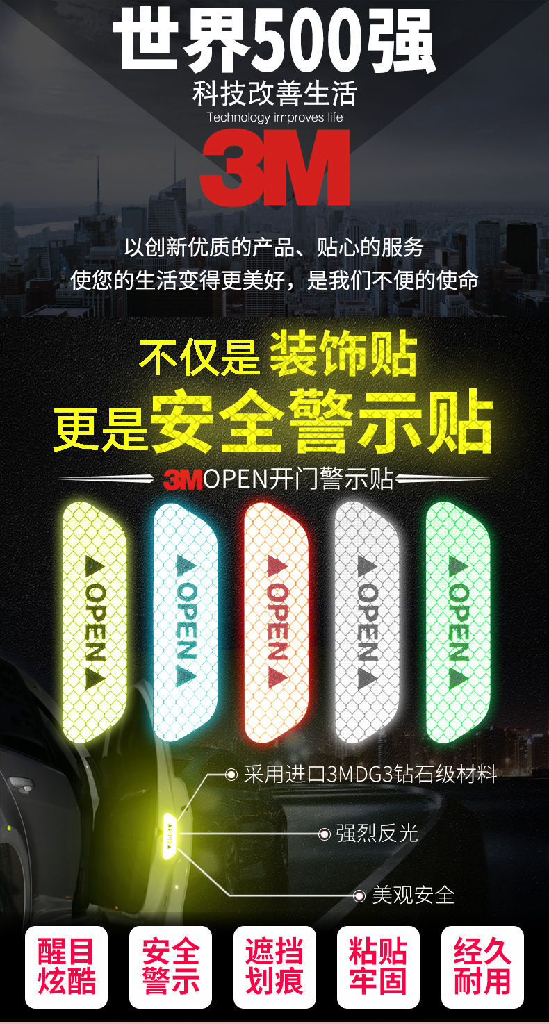 3m 자동차 도어 반사 스티커 자동차 도어 자동차 스티커 도어 충돌 방지 스티커 수정 신체 장식 창조적 인 자동차 스티커스토어 가기
