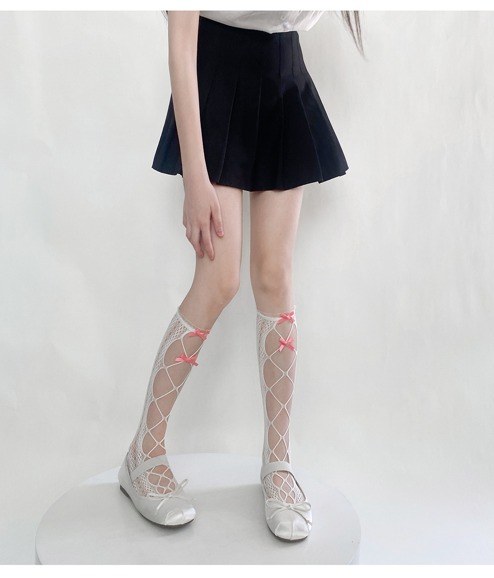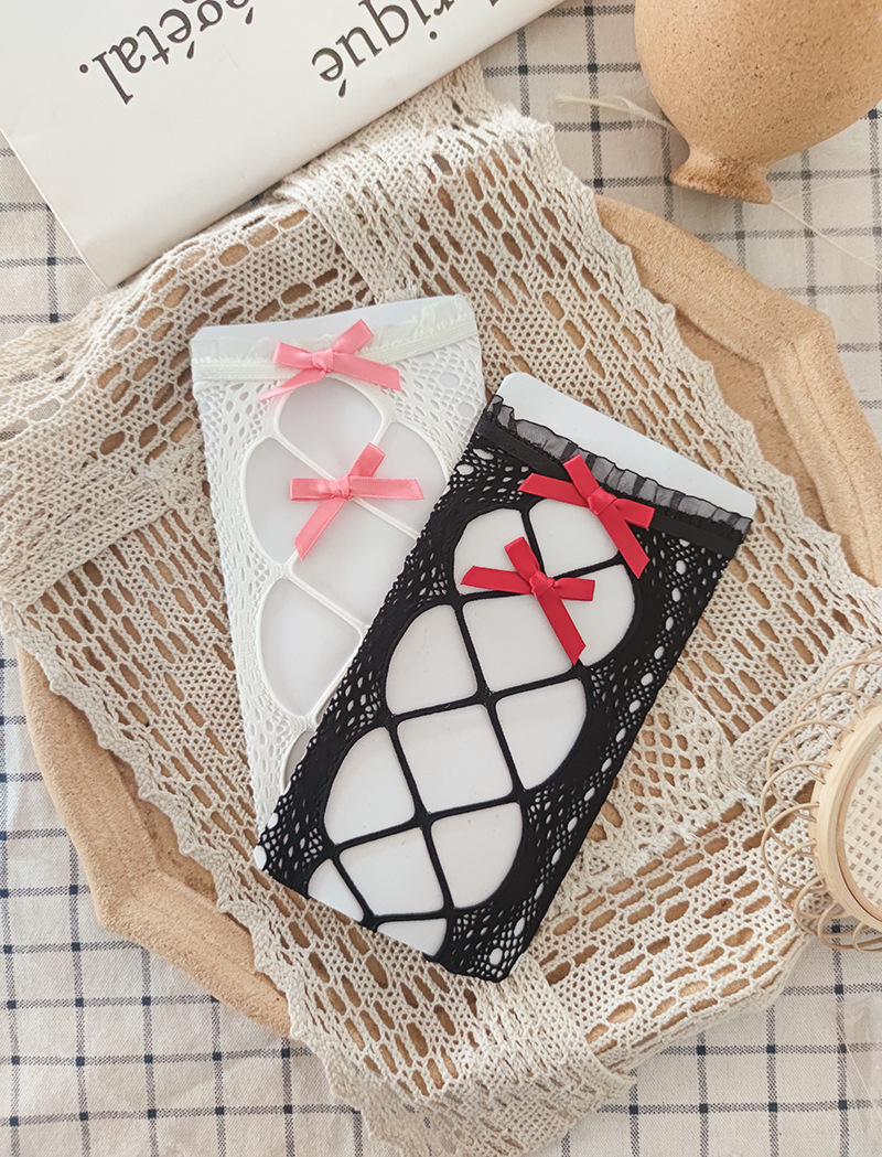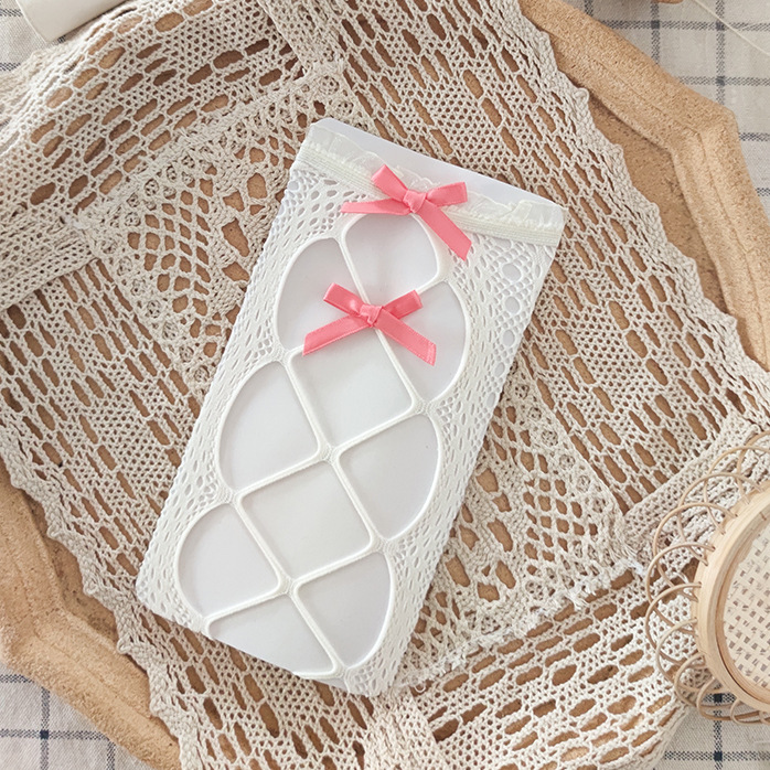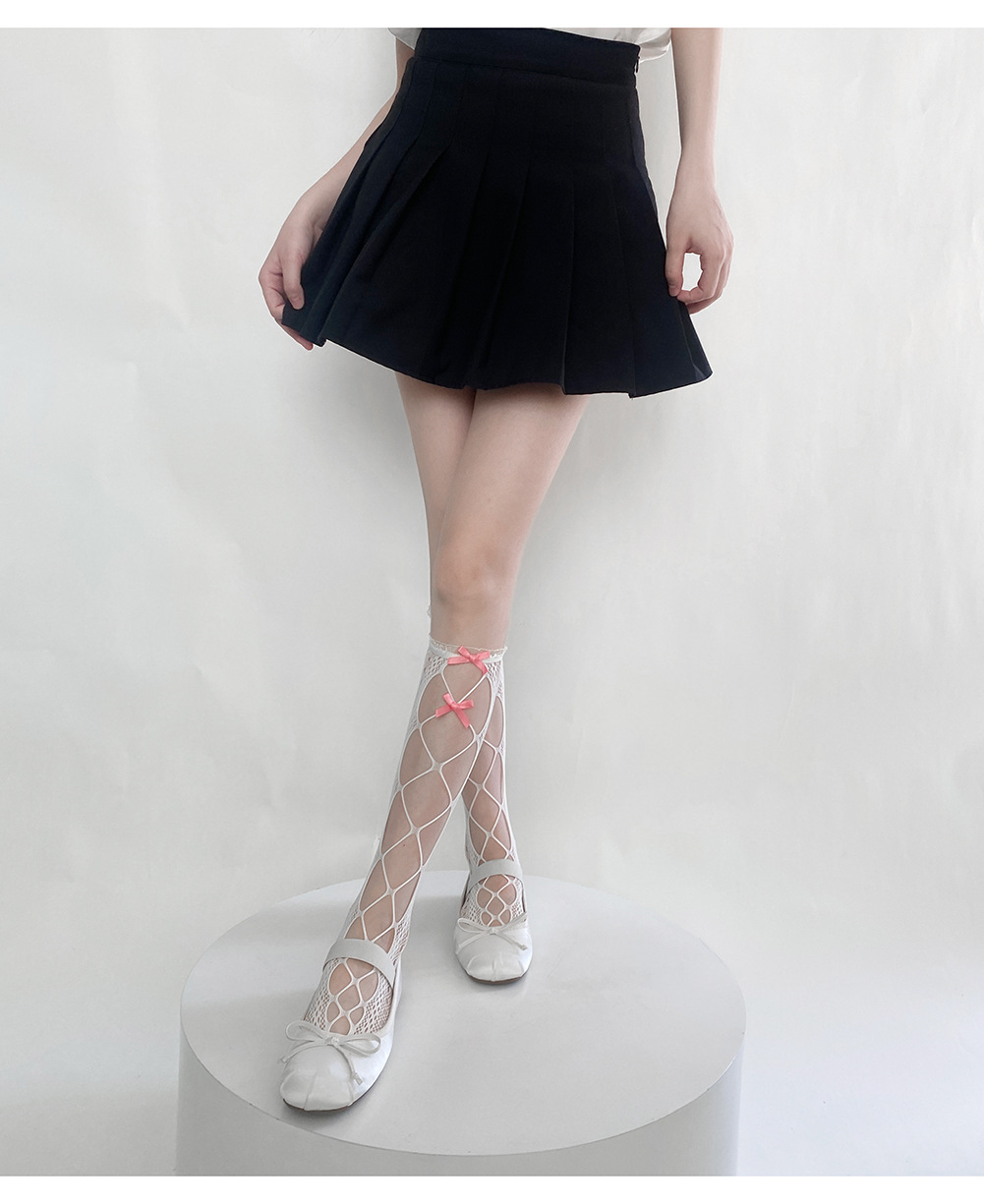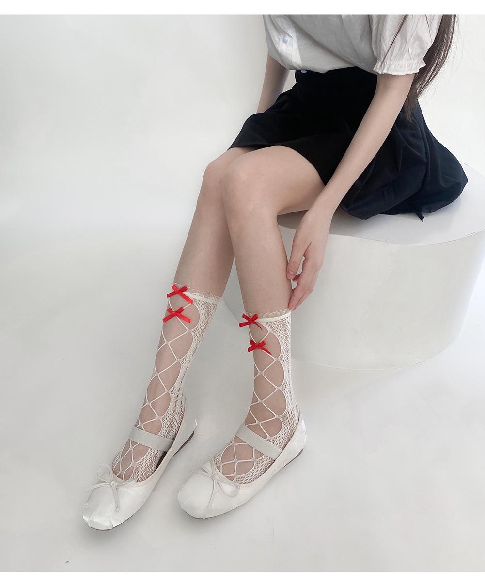 일본 요정 양말 귀여운 활 다크 중공 대형 그리드 자카드 그물 양말 우유 흰색 커프 양말 중간 튜브