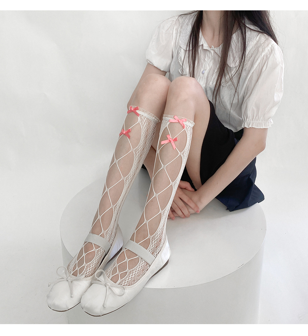 일본 요정 양말 귀여운 활 다크 중공 대형 그리드 자카드 그물 양말 우유 흰색 커프 양말 중간 튜브스토어 가기