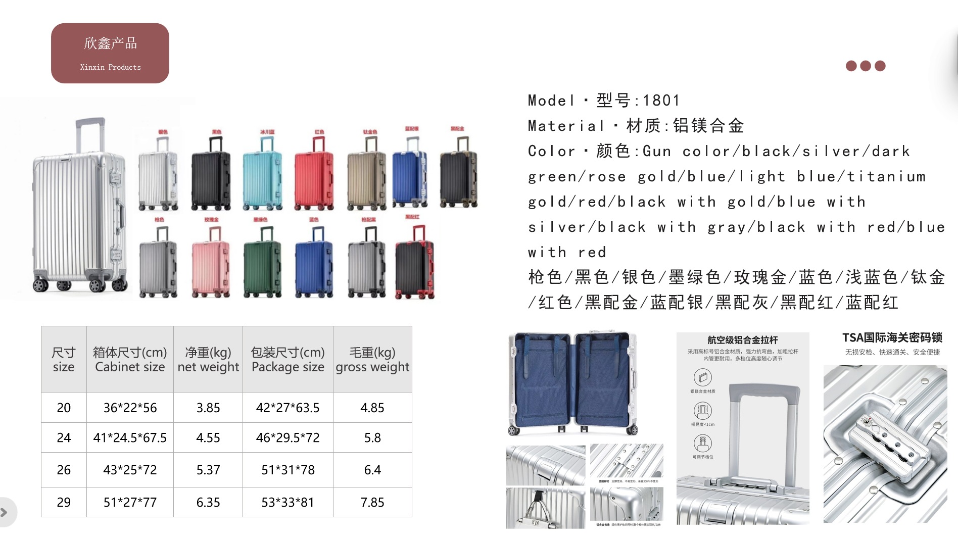 모든 알루미늄 마그네슘 합금 20 인치 수하물 케이스 24 인치 금속 가방 20 인치 비즈니스 탑승 비밀번호 수하물