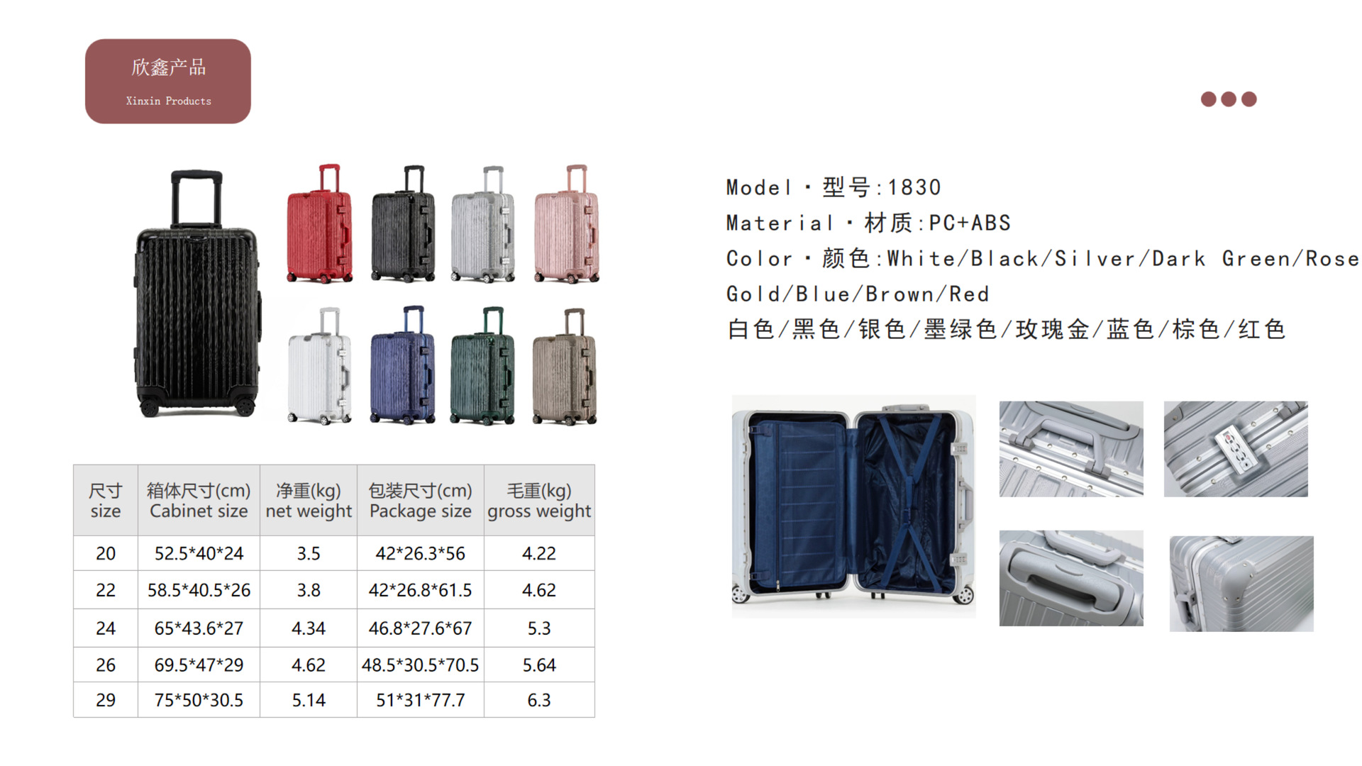 • 알루미늄 프레임 - 브라운 [abs+pc+금속 코너+가방 걸이 기능]