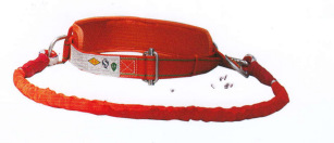 5)带使用两年后,作一次抽检,围杆带以2206N(225kgf)静负荷Smin,若无破损则可继续使用。悬挂带用80kg重的沙人自一米高自由坠落进行冲击试验,若无破损则可继续使用,带正常使用期为三年,但发现异常应提前报废。