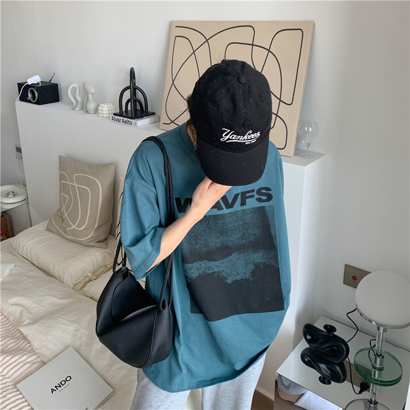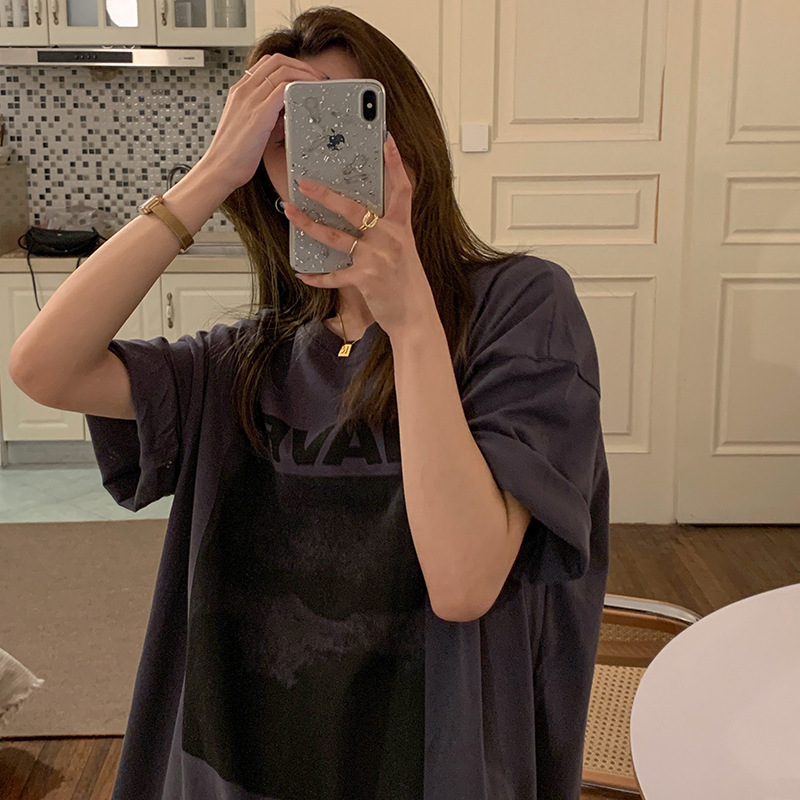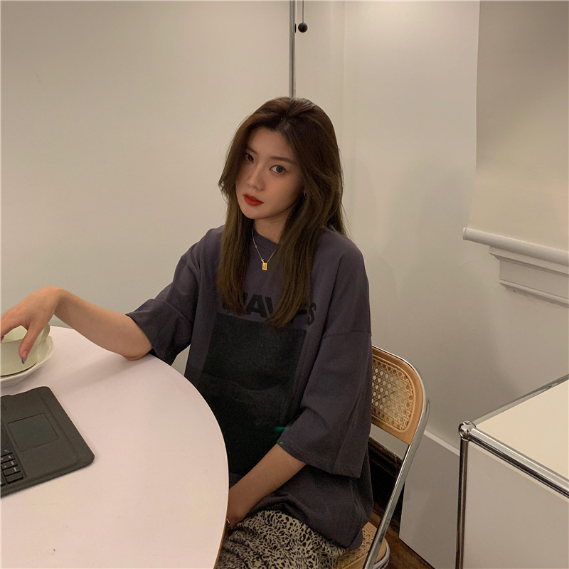 한국 스타일 중간 길이 루즈한 모든 경기 반팔 티셔츠 여성용 2022 여름 새로운 레트로 bf 스타일 티셔츠 학생용 탑스토어 가기