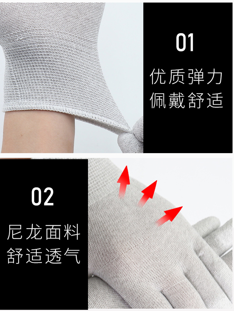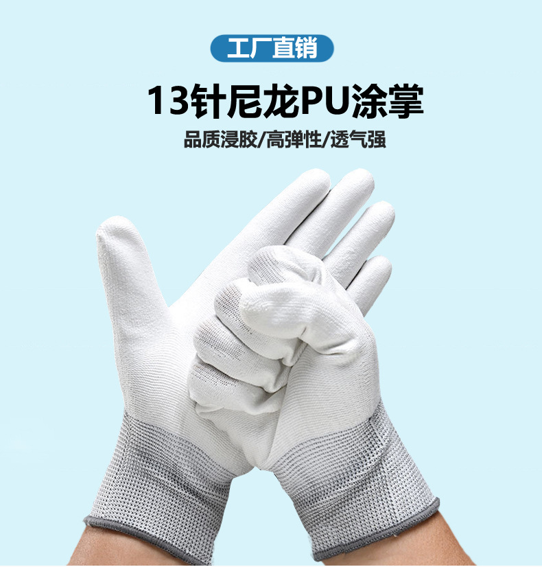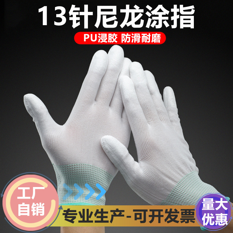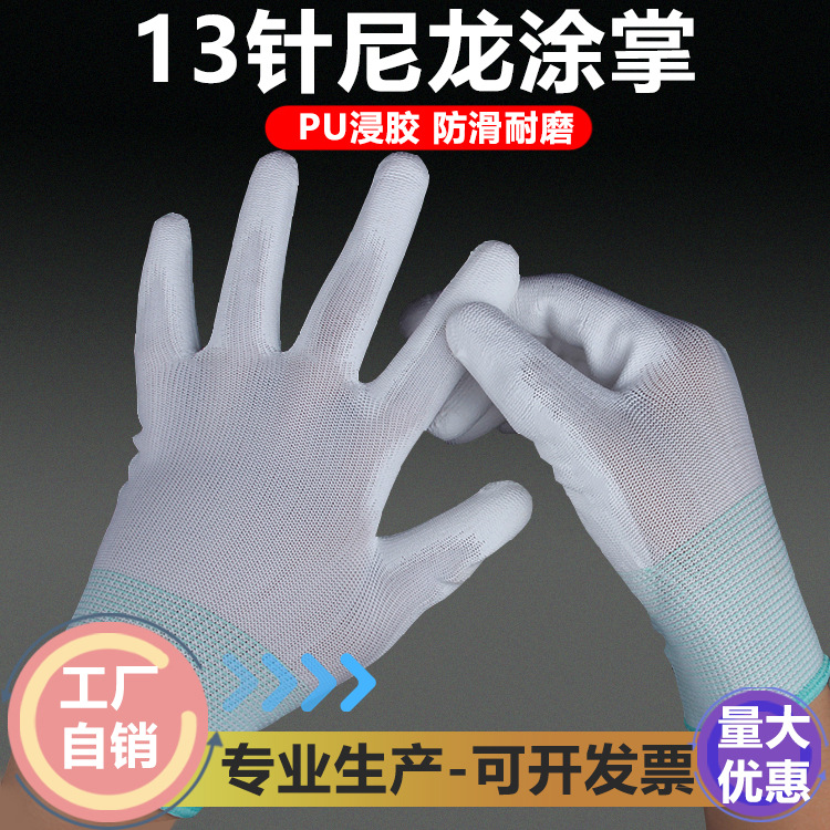 13 니트 PU 나일론 팜 담근 장갑 산업용 먼지없는 통기성 노동 보호 미끄럼 방지 내마모성 전자 공장 운영스토어 가기