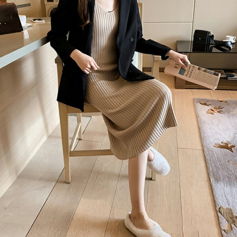 2021 새로운 도착 슬립 원피스 봄과 가을 우아한 슬림 니트 Vall 스커트 중간 길이 블랙 내베이스 스커트스토어 가기