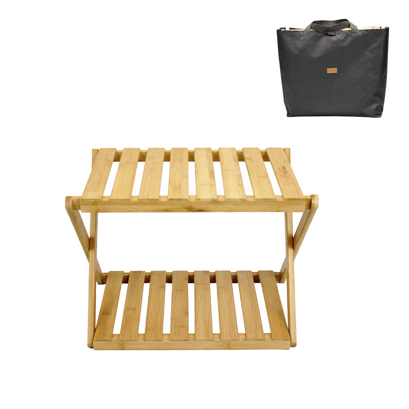 야외 캠핑 2 층 랙 대나무 및 나무 피크닉 테이블 배수 랙 접이식 식기 주방 랙 스토리지 랙 냉장고 랙