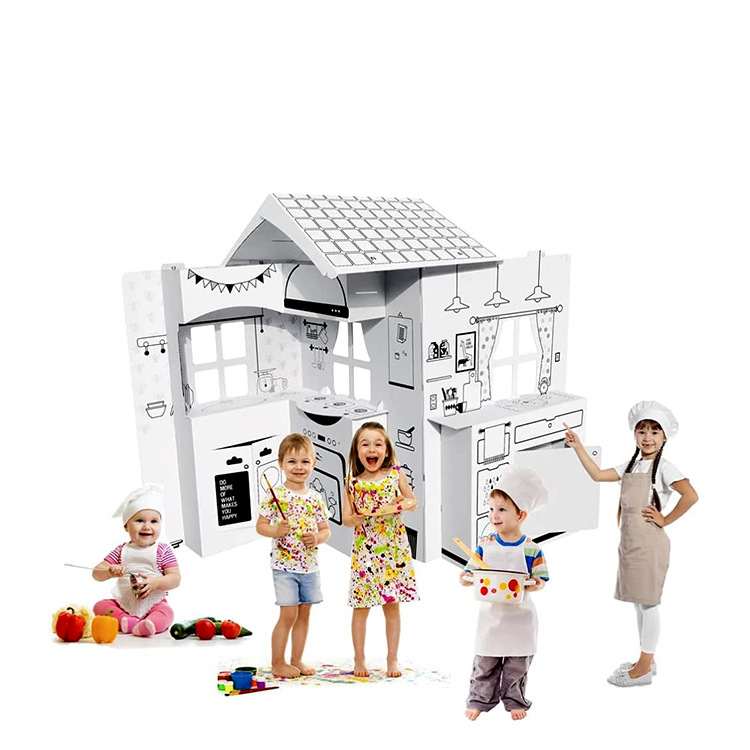 DIY 낙서 집 어린이 유치원 어린이 날 판지 조립 장난감 어린이 미니 하우스 주방