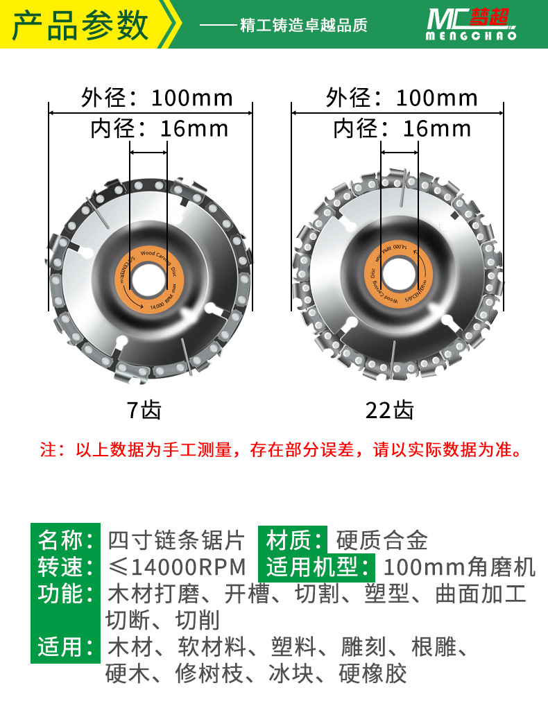 4 인치 앵글 그라인더 체인 톱 디스크 100 목공 톱 블레이드 핸드 그라인더 슬롯 조각 목재 절단기 연삭 시트