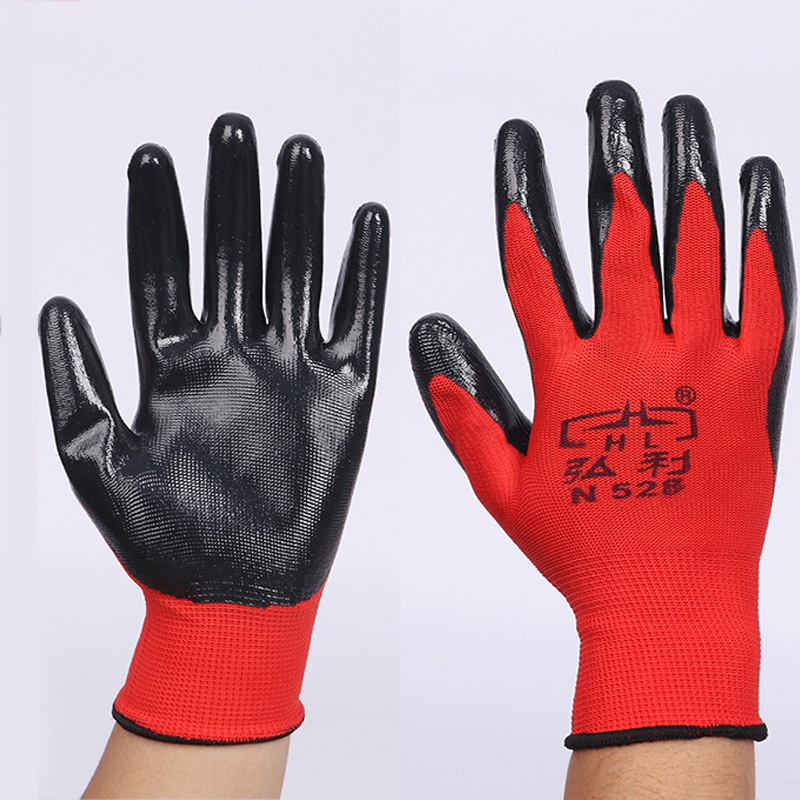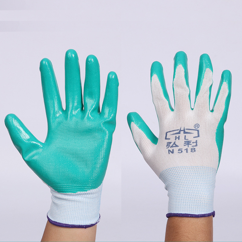 Hongli Dingqing 장갑 두꺼운 교수형 접착제 노동 보호 나일론 딥 접착제 통기성 편안한 보호 장갑 야외 Dingqing 장갑스토어 가기