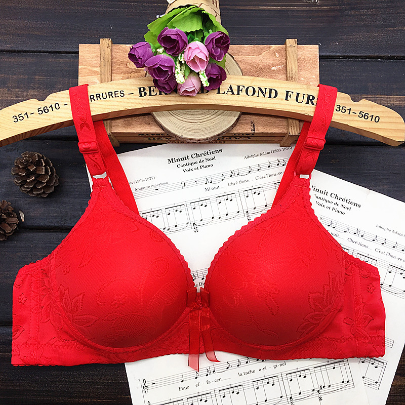 스틸 링이없는 Jiaoling Flower 9401 브라 푸시 업 중간 두께 B 컵 모양 상단 홀더 더블 브레스트 비 변형 브라